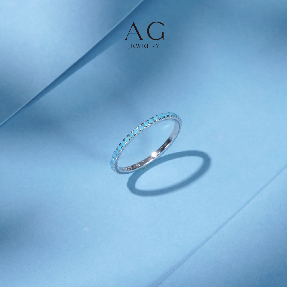 AG Turquoise Inlay Ring 925 Sterling Silver Southwest Style Jewelry AGRHR792