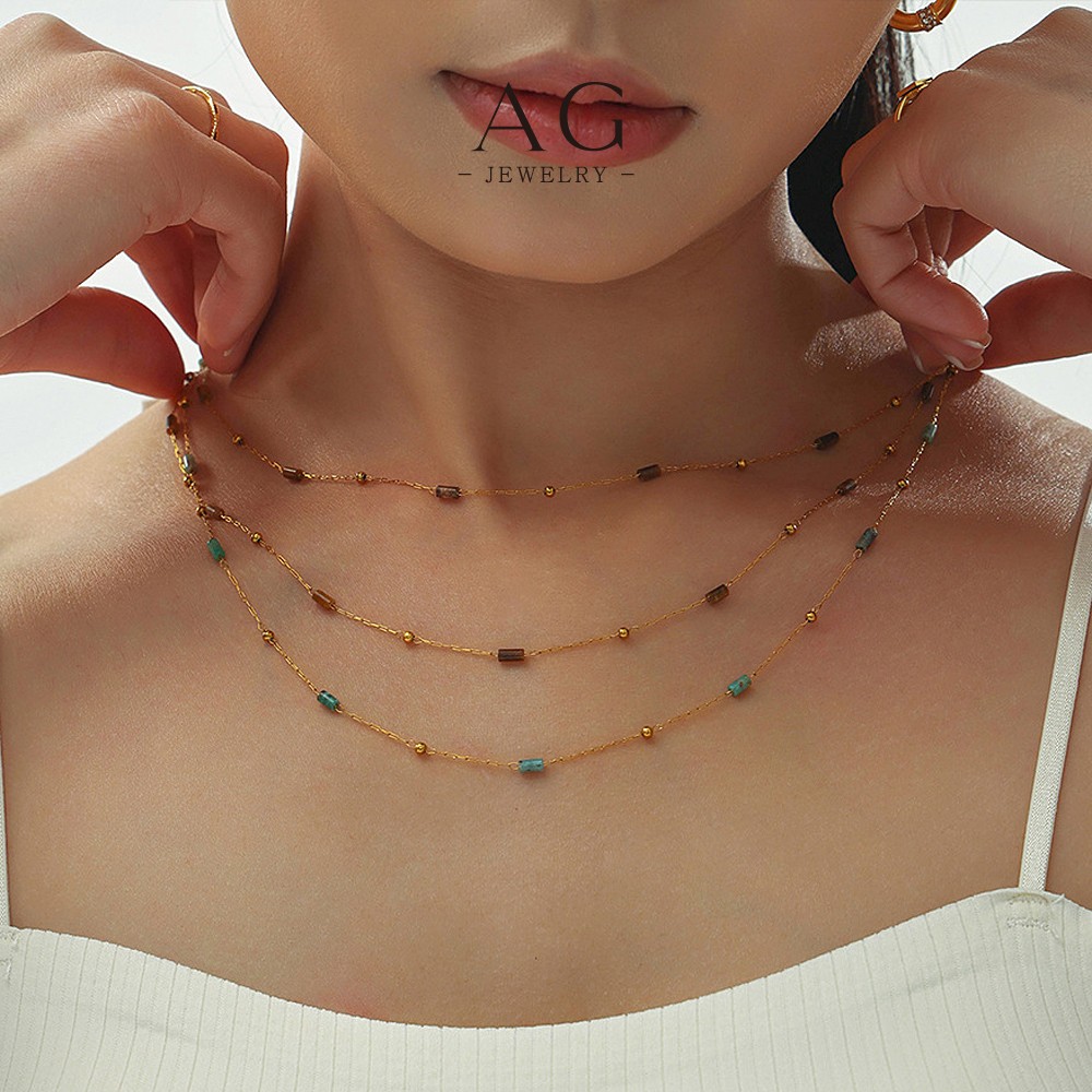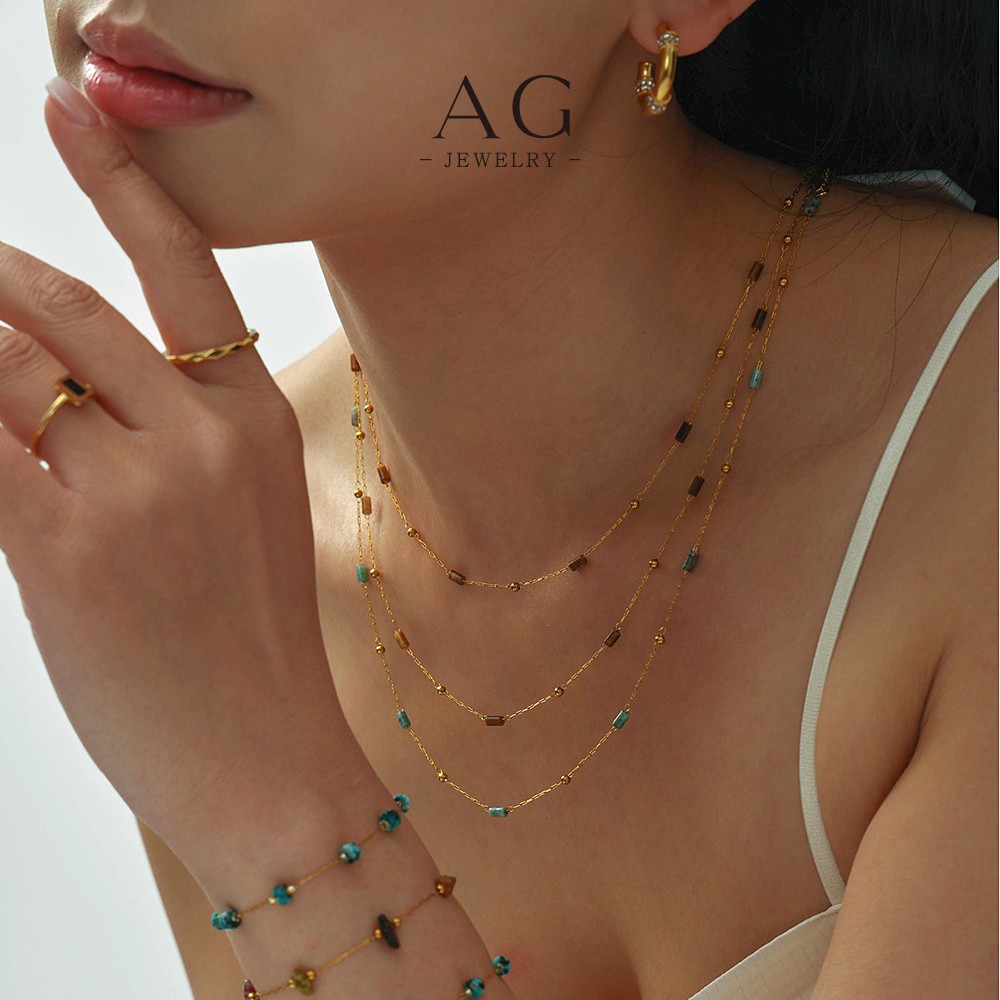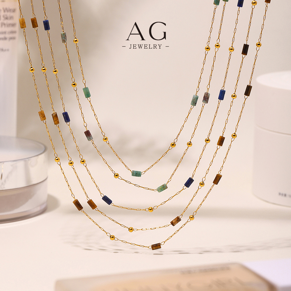 AG Stainless Steel Gemstone Color Necklace Collection Multicolor Birthstone Jewelry AGP1992