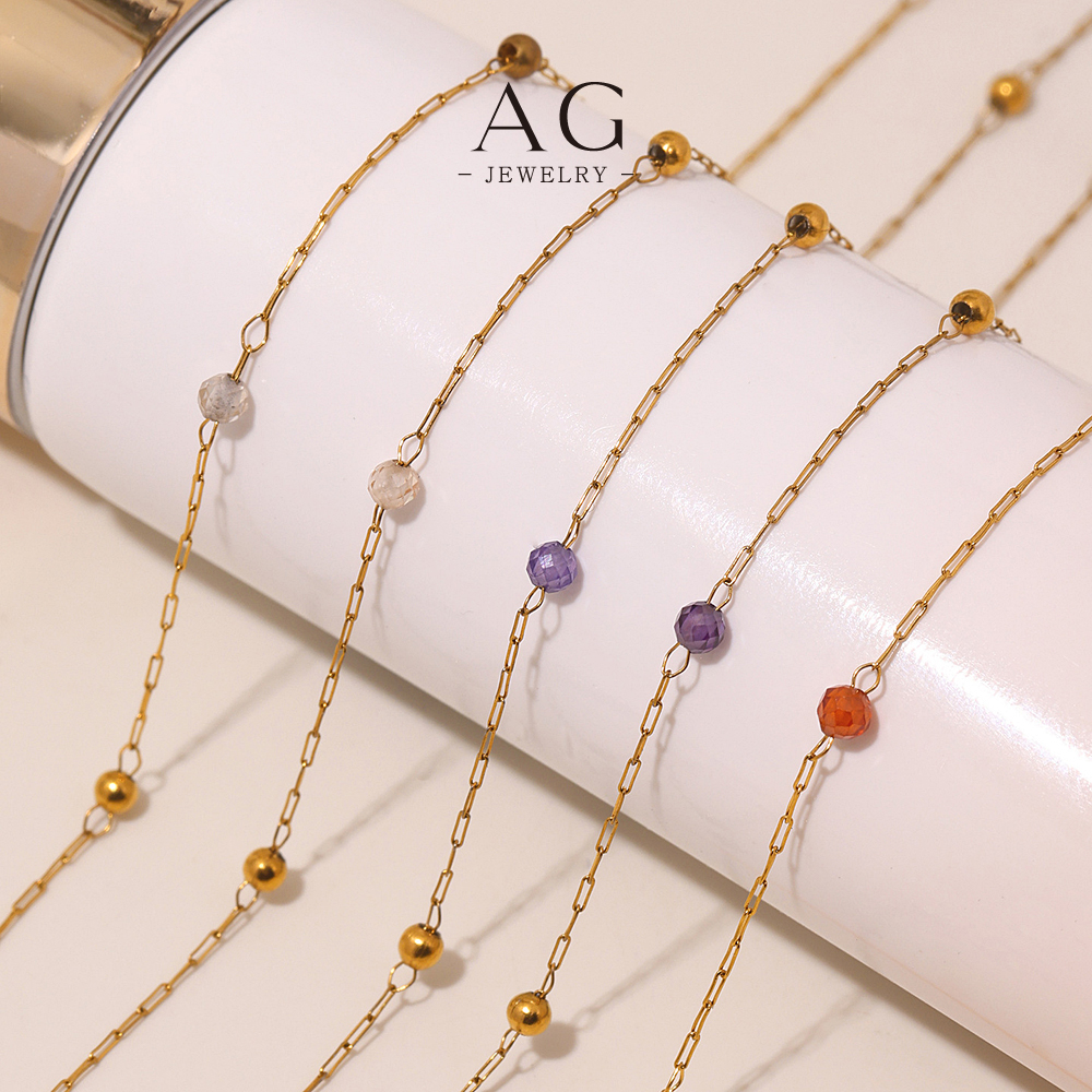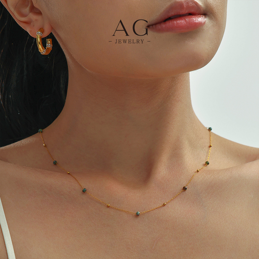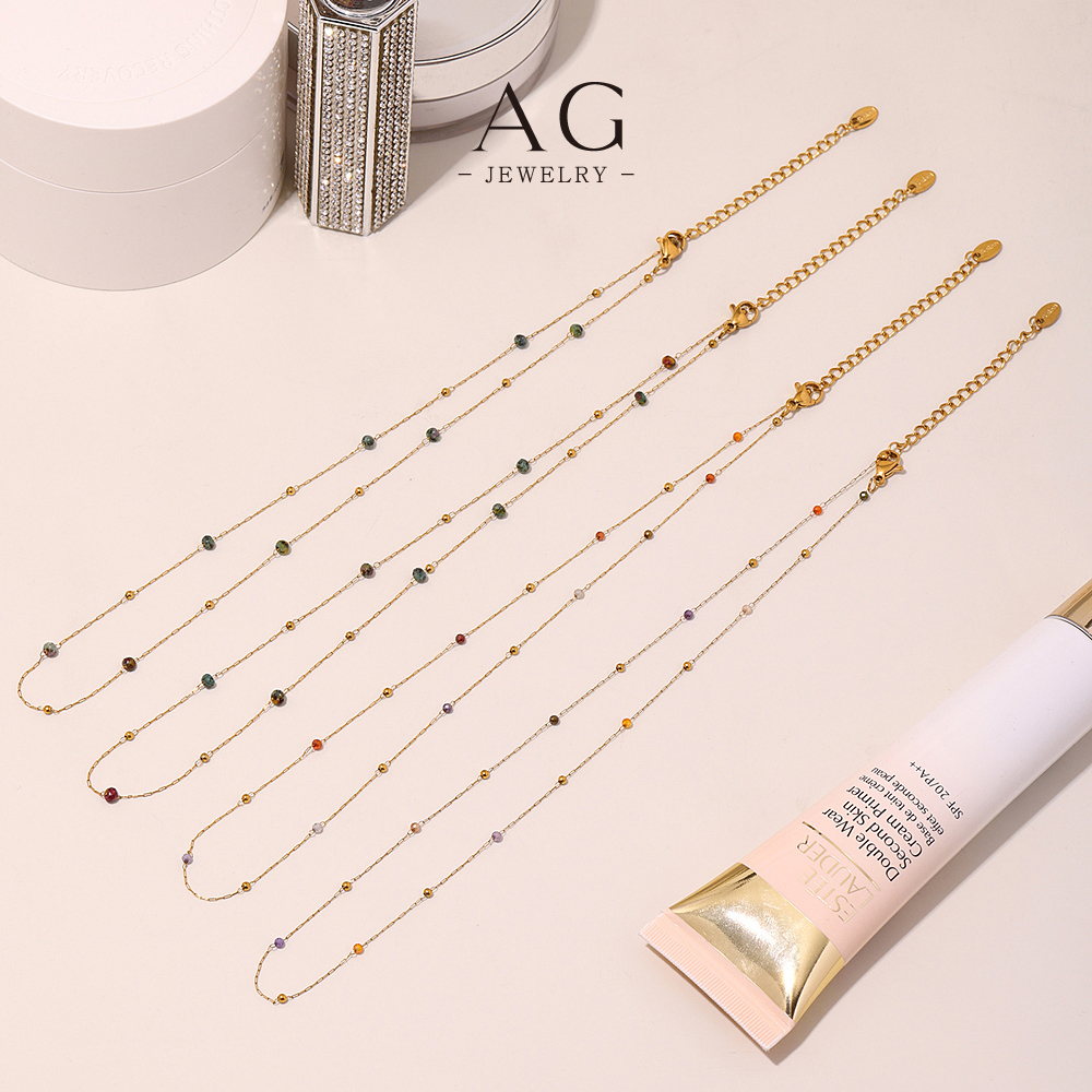 AG Stainless Steel Multicolor Bead Necklace Stackable Dainty Jewelry for Women AGP1991