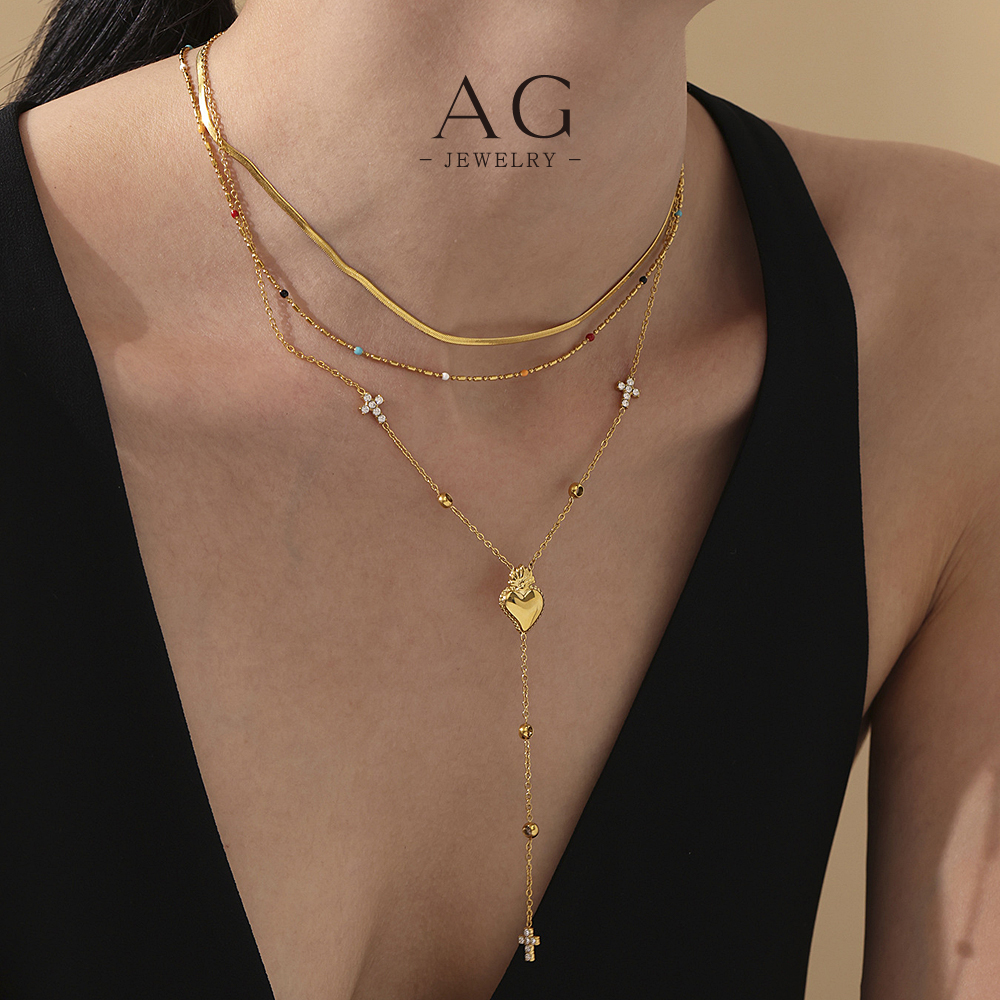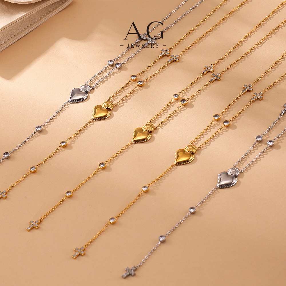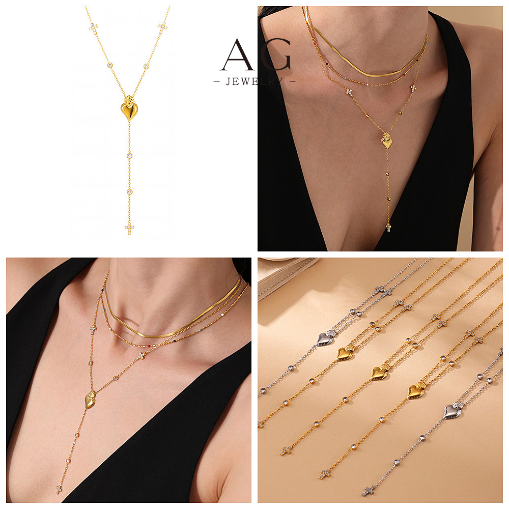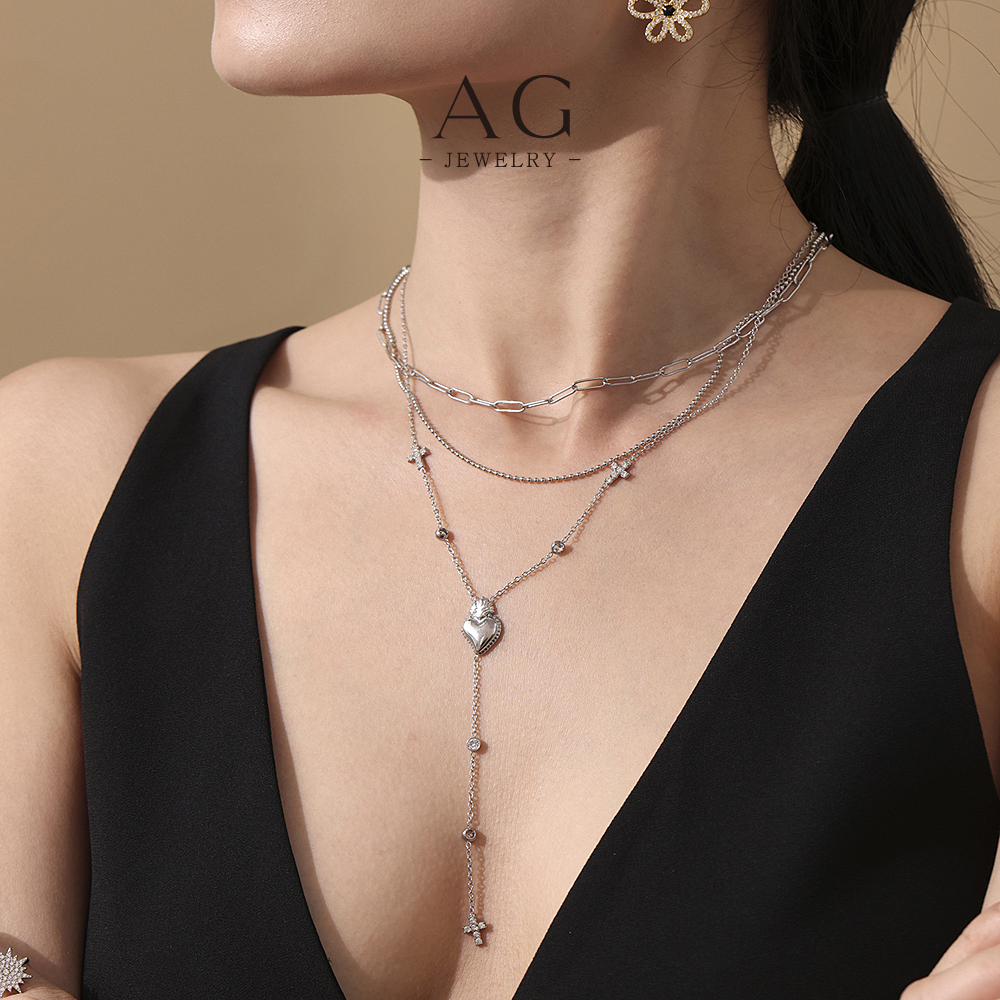 AG Stainless Steel Zircon Necklace Hypoallergenic Fashion Jewelry for Women Men Gift AGP1493