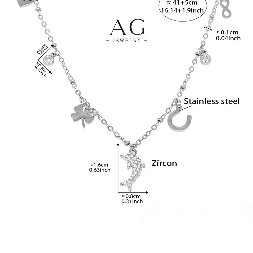 AG Multi Pendant Necklace Stainless Steel Layered Narrative Jewelry AGP1335