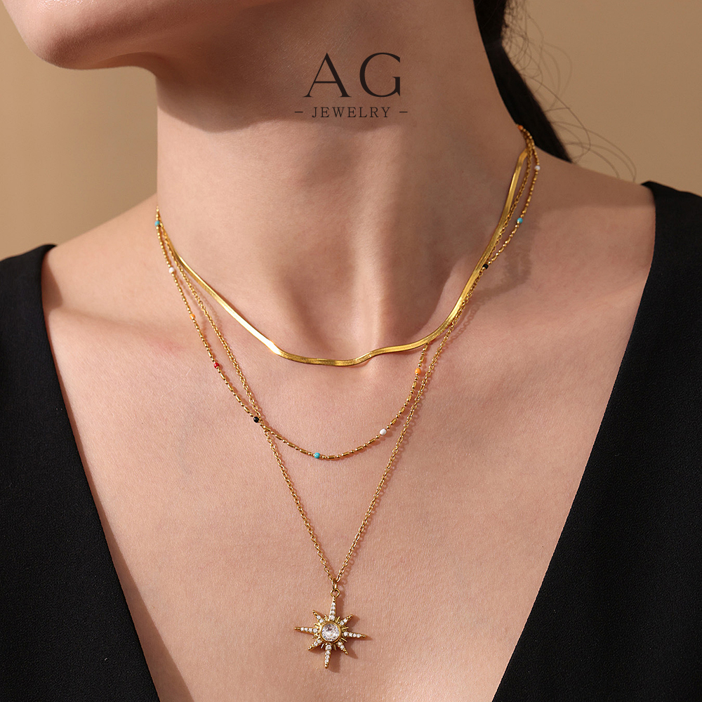 AG Sunflower Pendant Necklace Stainless Steel Botanical Joy Jewelry AGP1310