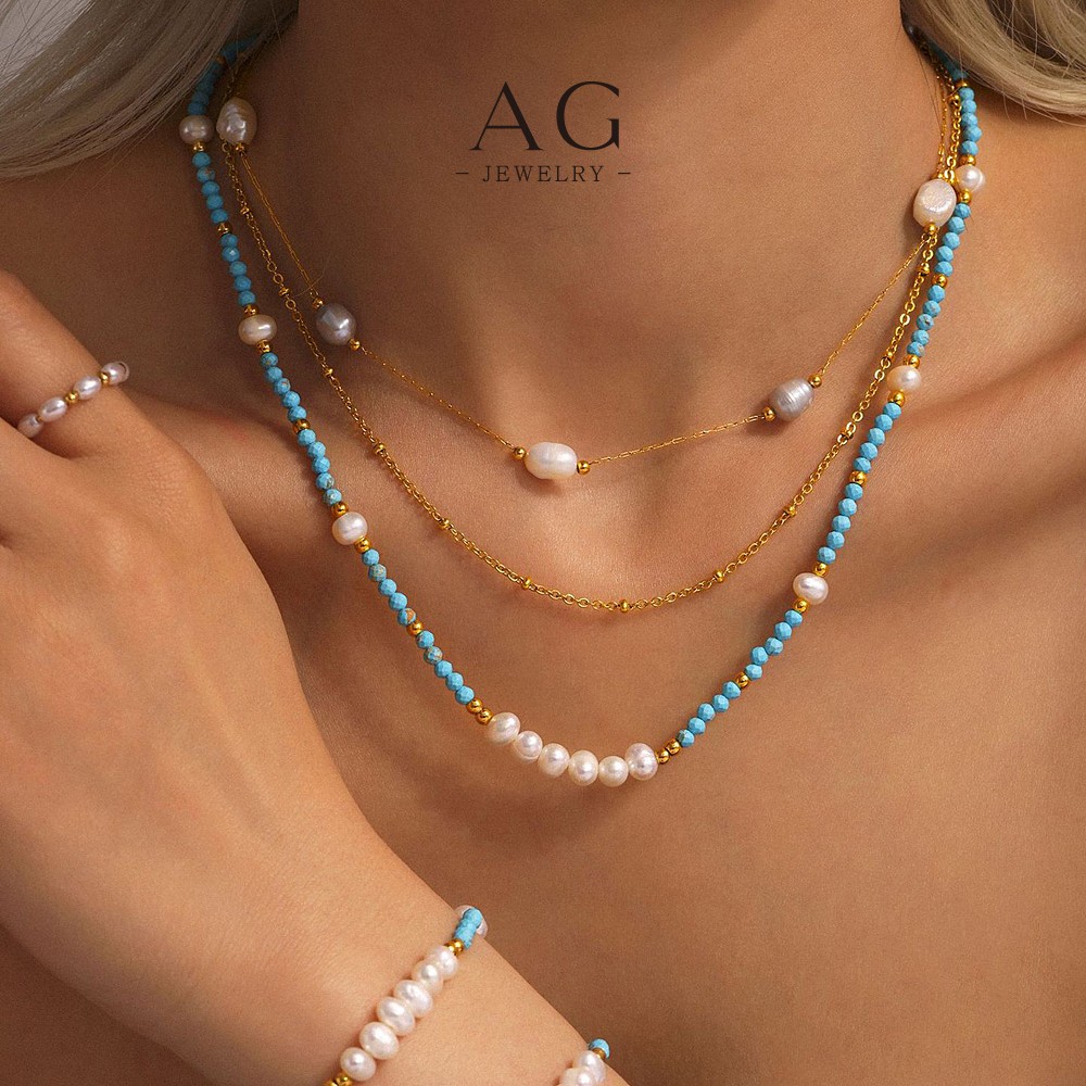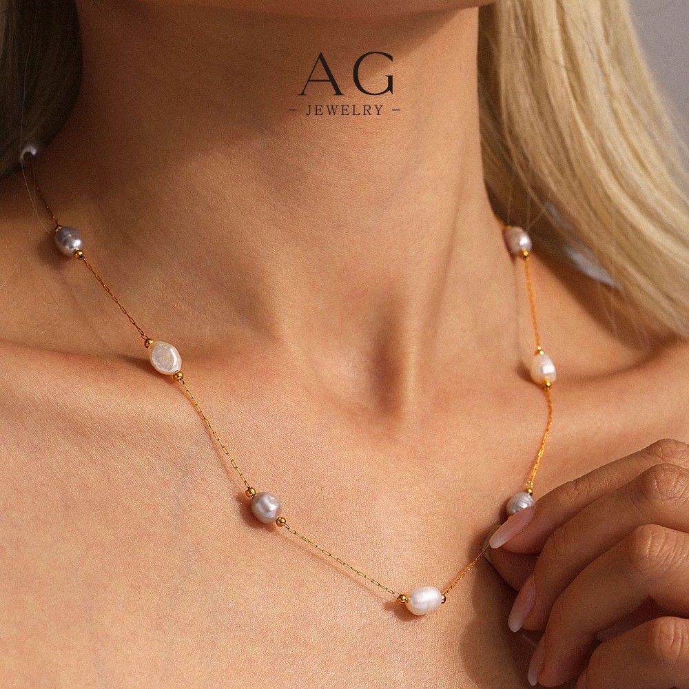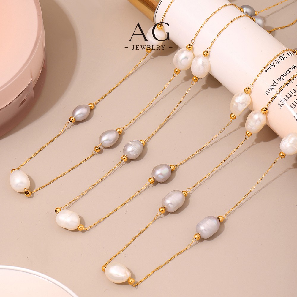AG Pearl Strand Necklace Stainless Steel Layered Luster Jewelry AGP1303