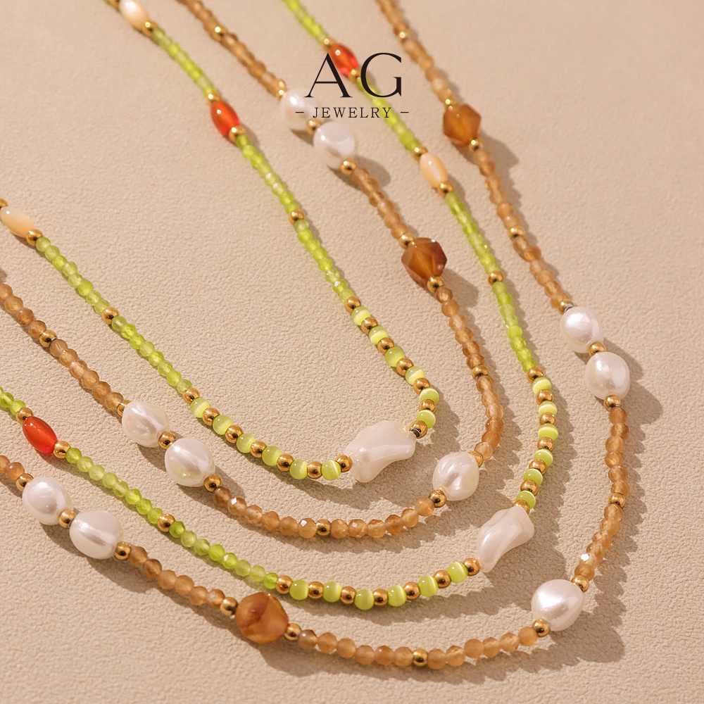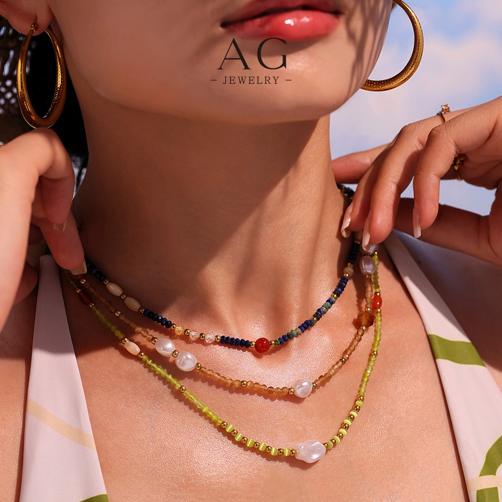 AG Stainless Steel Beaded Charm Necklace Stackable Layered Jewelry AGP1268
