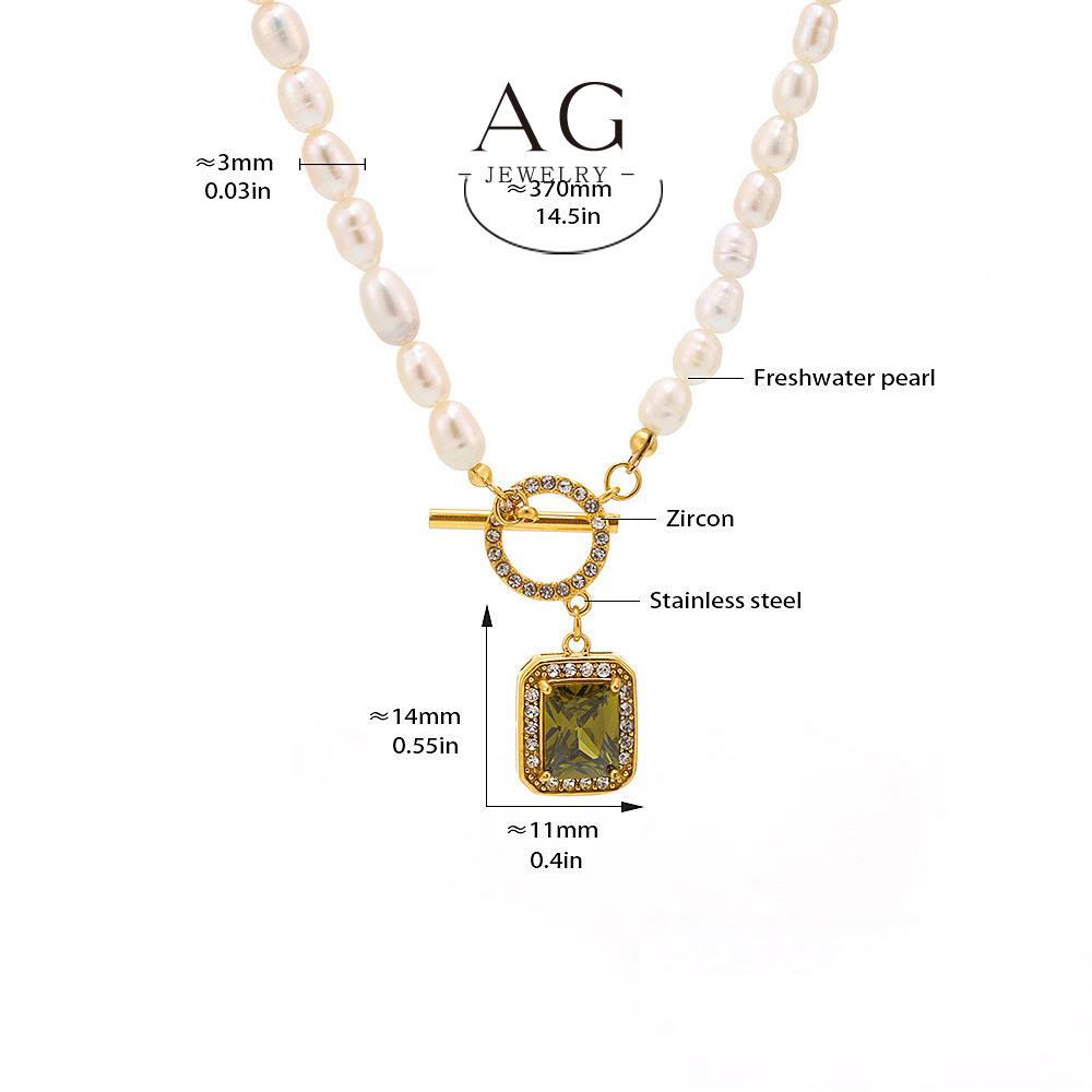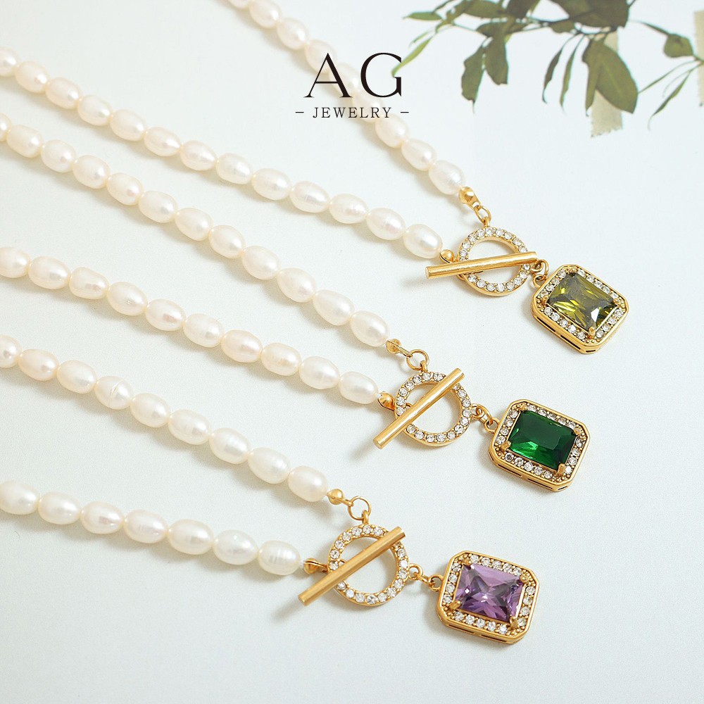 AG Stainless Steel OT Clasp Square Multi Color Zirconia Pearl Necklace Set AGP1244