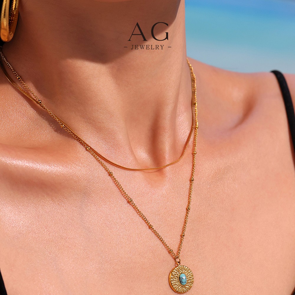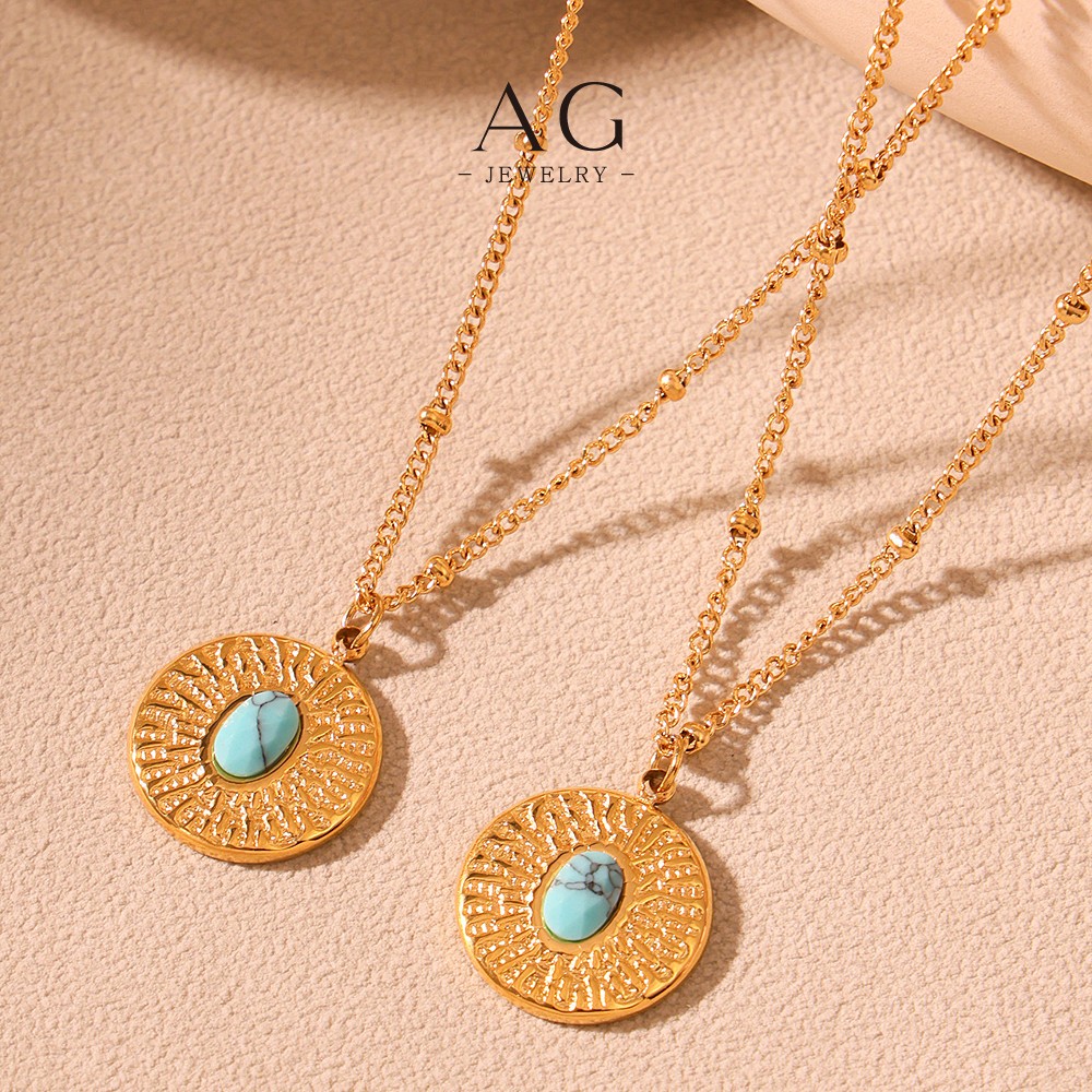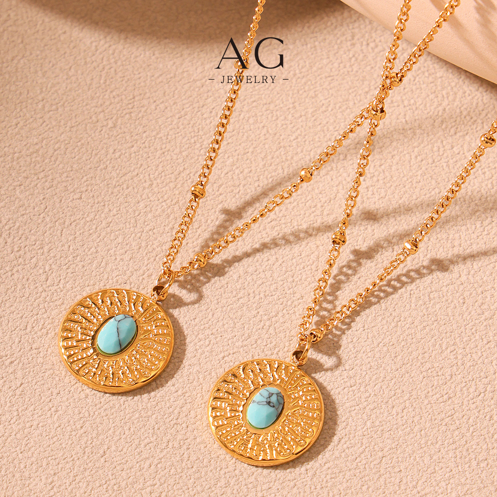AG Turquoise Stone Beaded Bracelet And Necklace Set Boho Chic Jewelry AGP1179