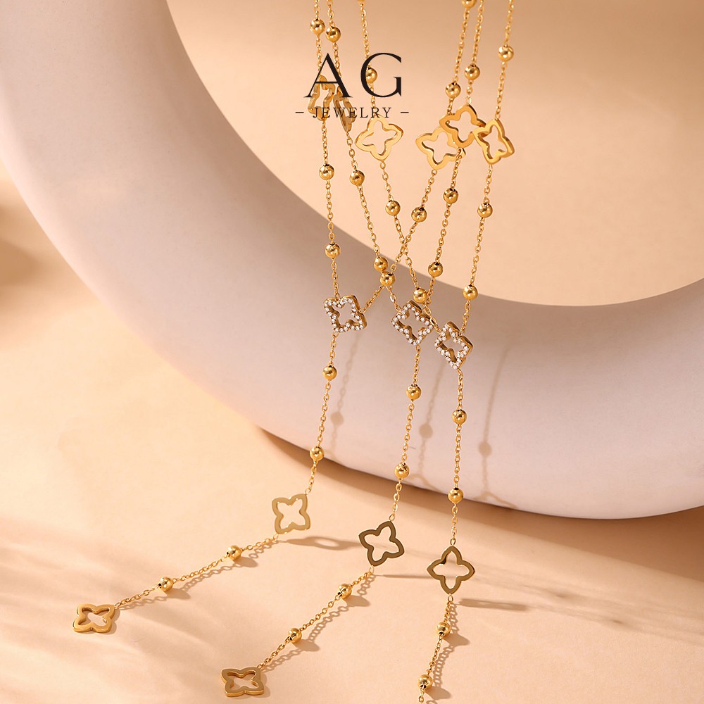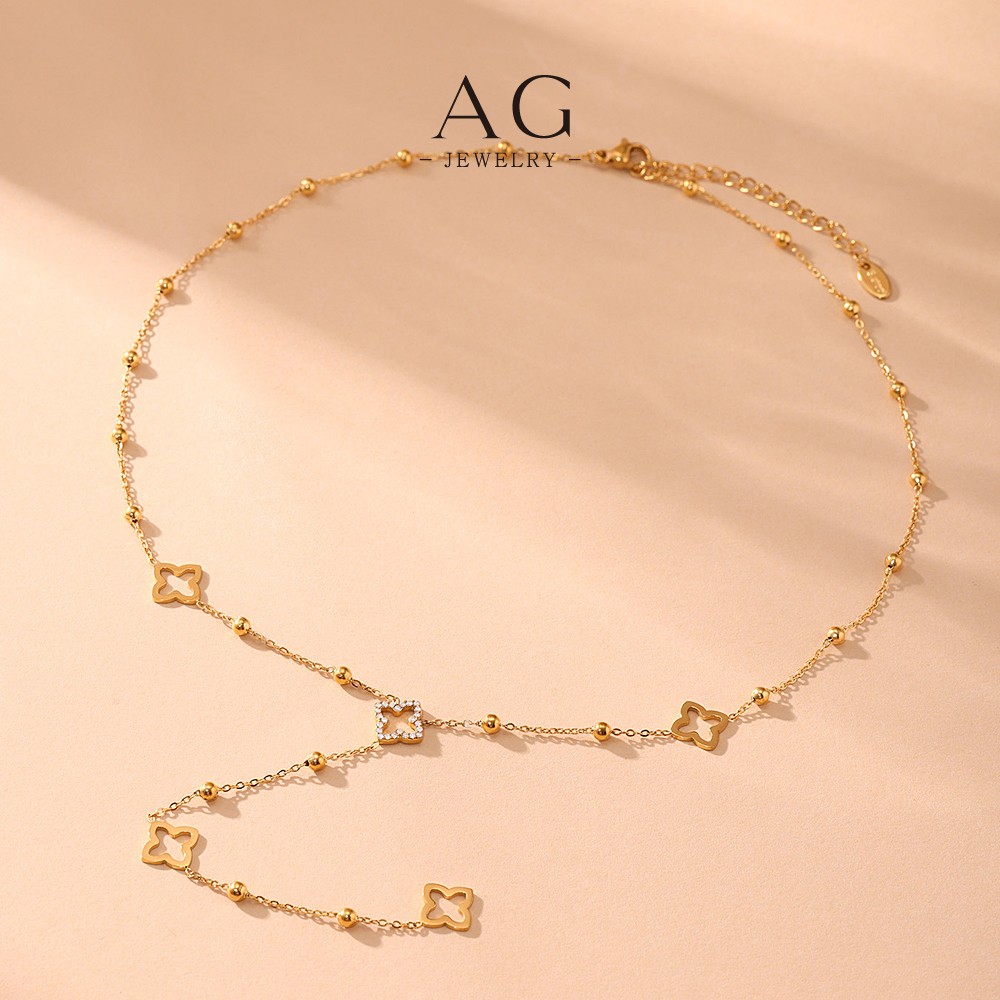 AG Stainless Steel Four Leaf Clover Choker Necklace Lucky Charm Gift AGP780