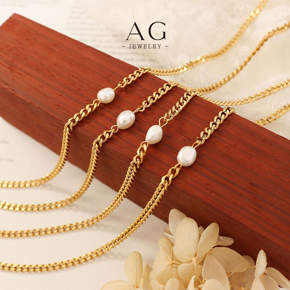 AG Stainless Steel Pearl Chain Necklace Minimalist Dainty Jewelry AGP539