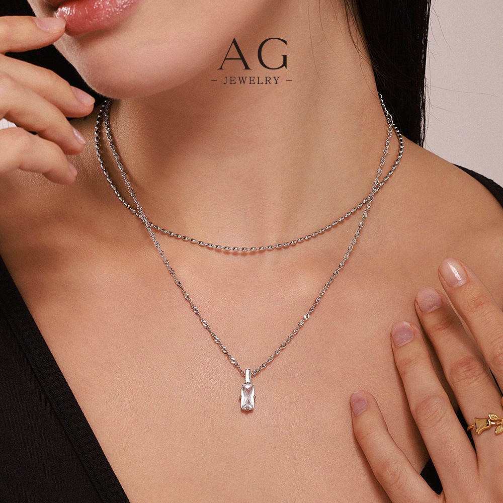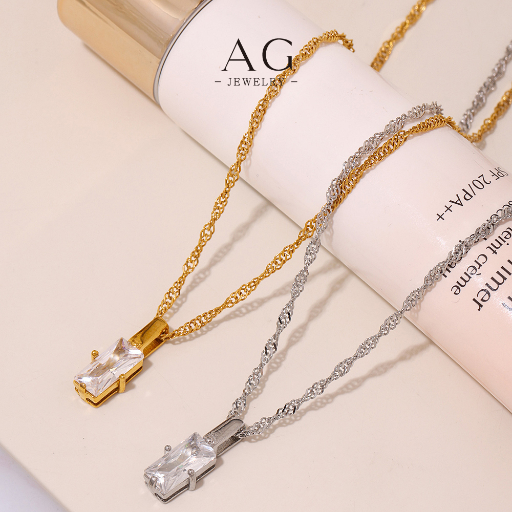 AG Stainless Steel Square Zirconia Statement Necklace For Women Gift Box Ready AGP516