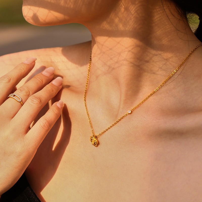 AG Stainless Steel Rose Flower Pendant Necklace Romantic Gift For Her AGP668