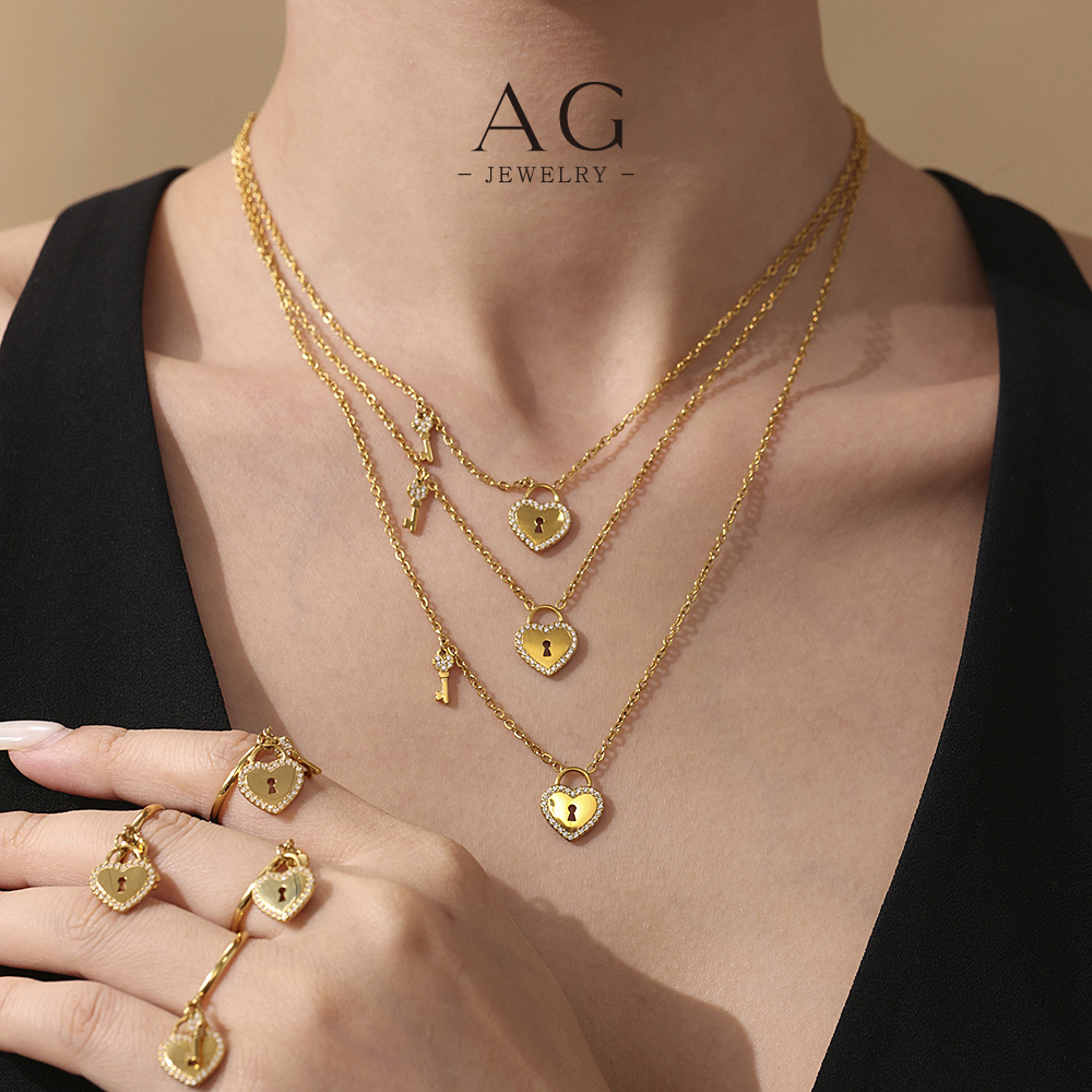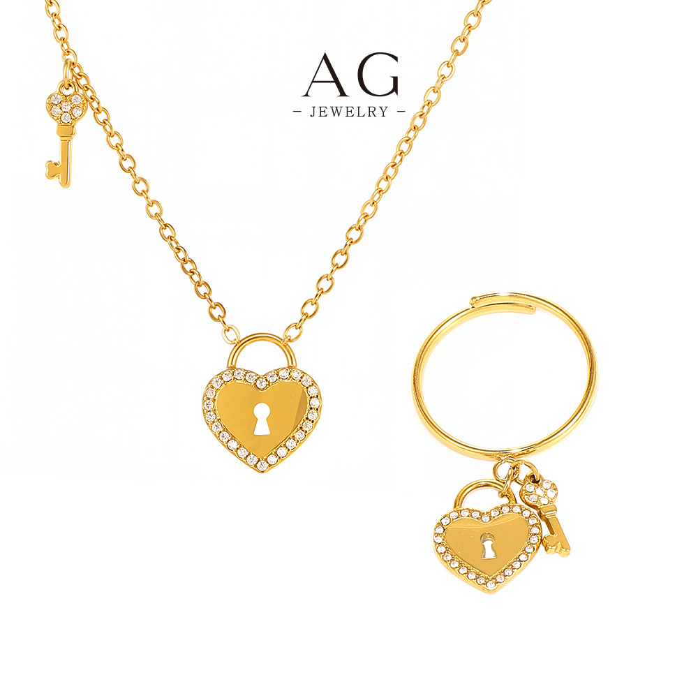 AG Heart And Lock Jewelry Set Necklace Bracelet Earrings Romantic Security Collection AGTXP299