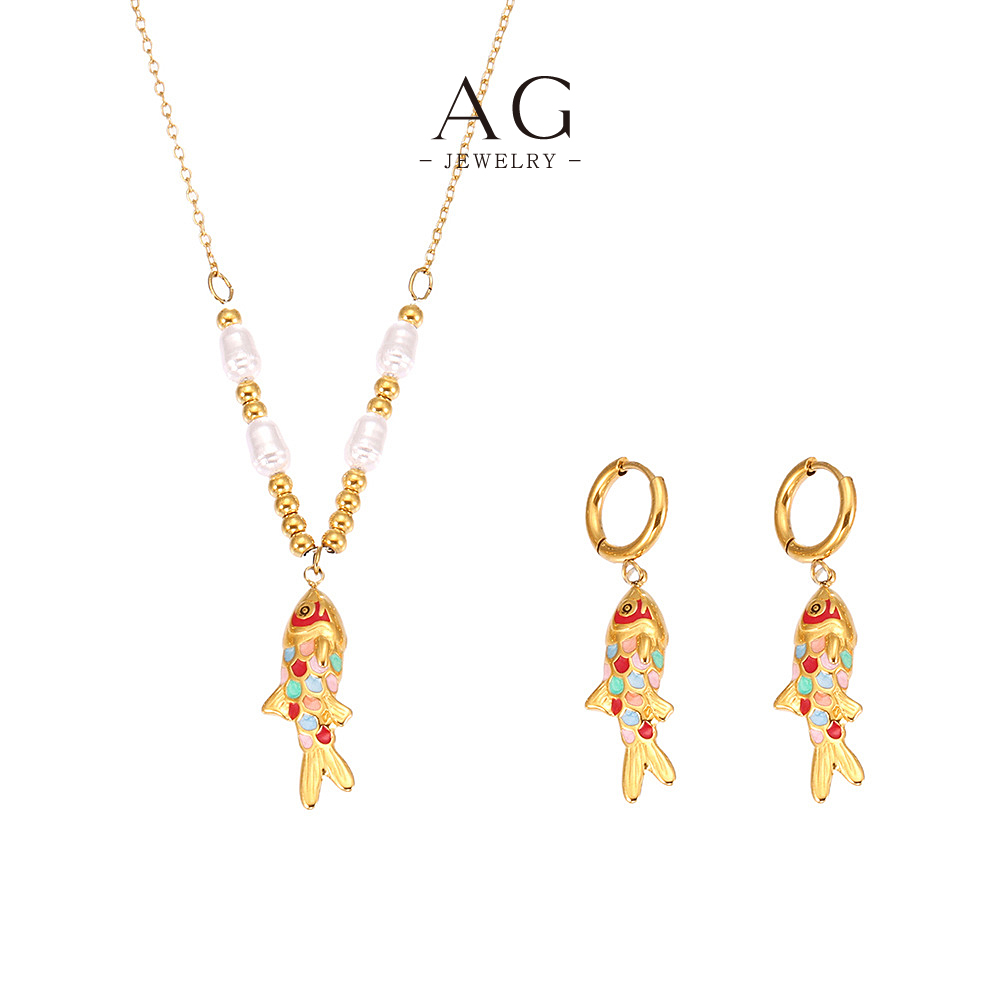 AG Fish Design Jewelry Set Necklace Earrings Ring Bracelet Ocean Life Collection AGTXP298