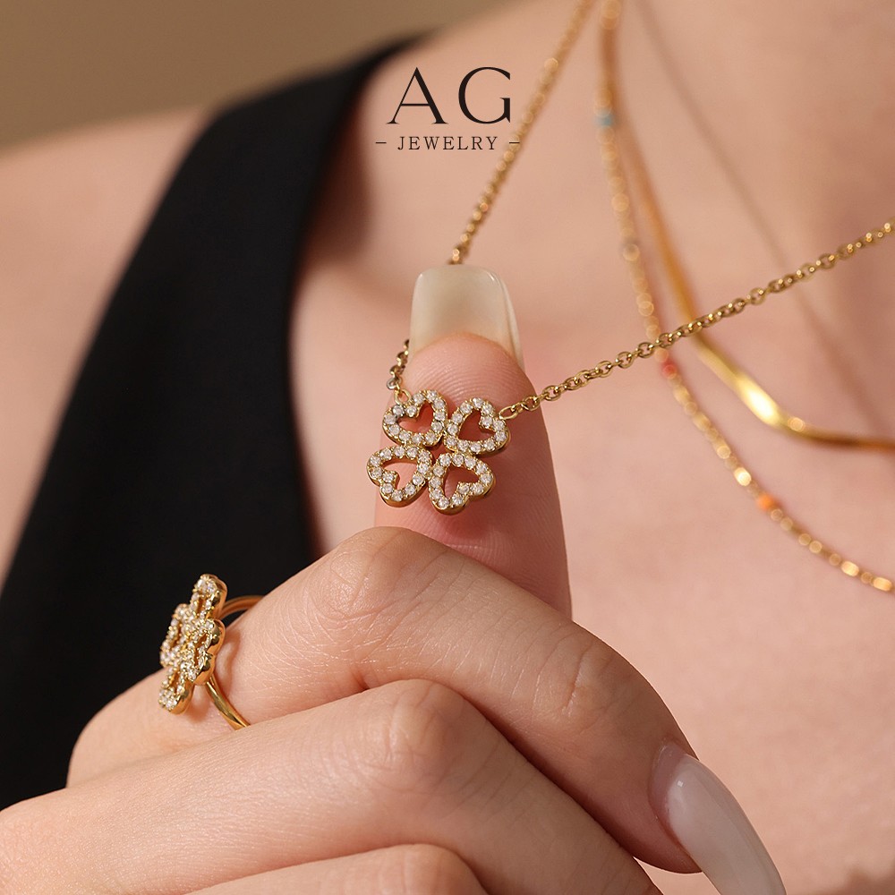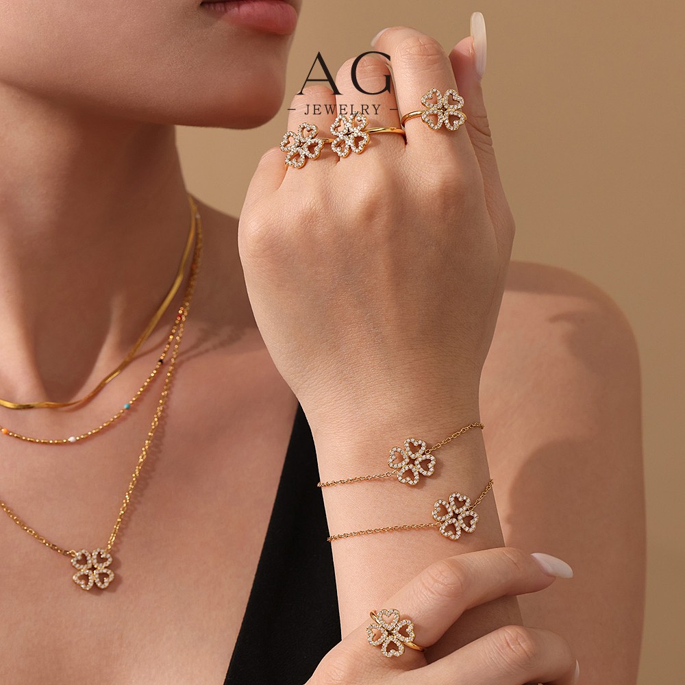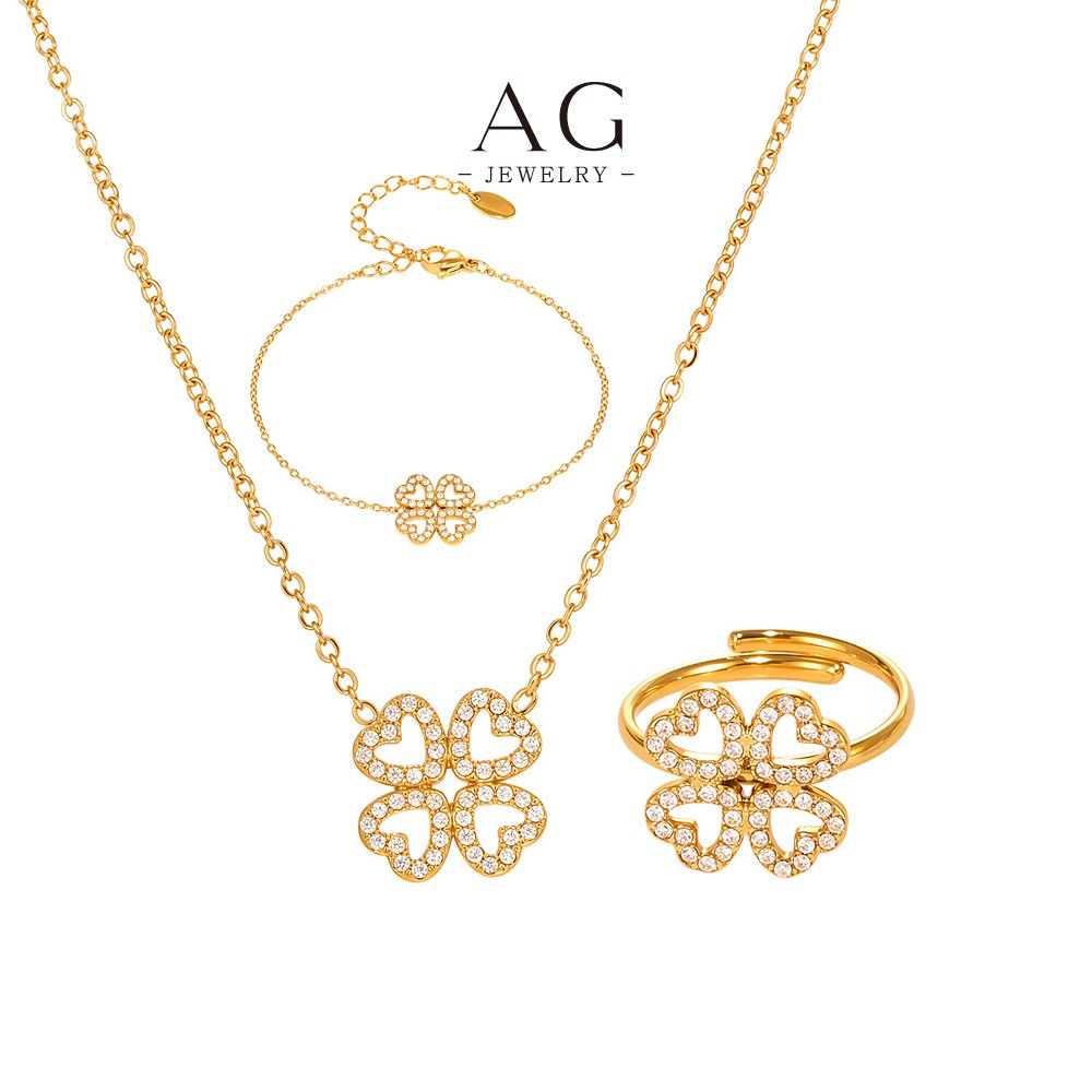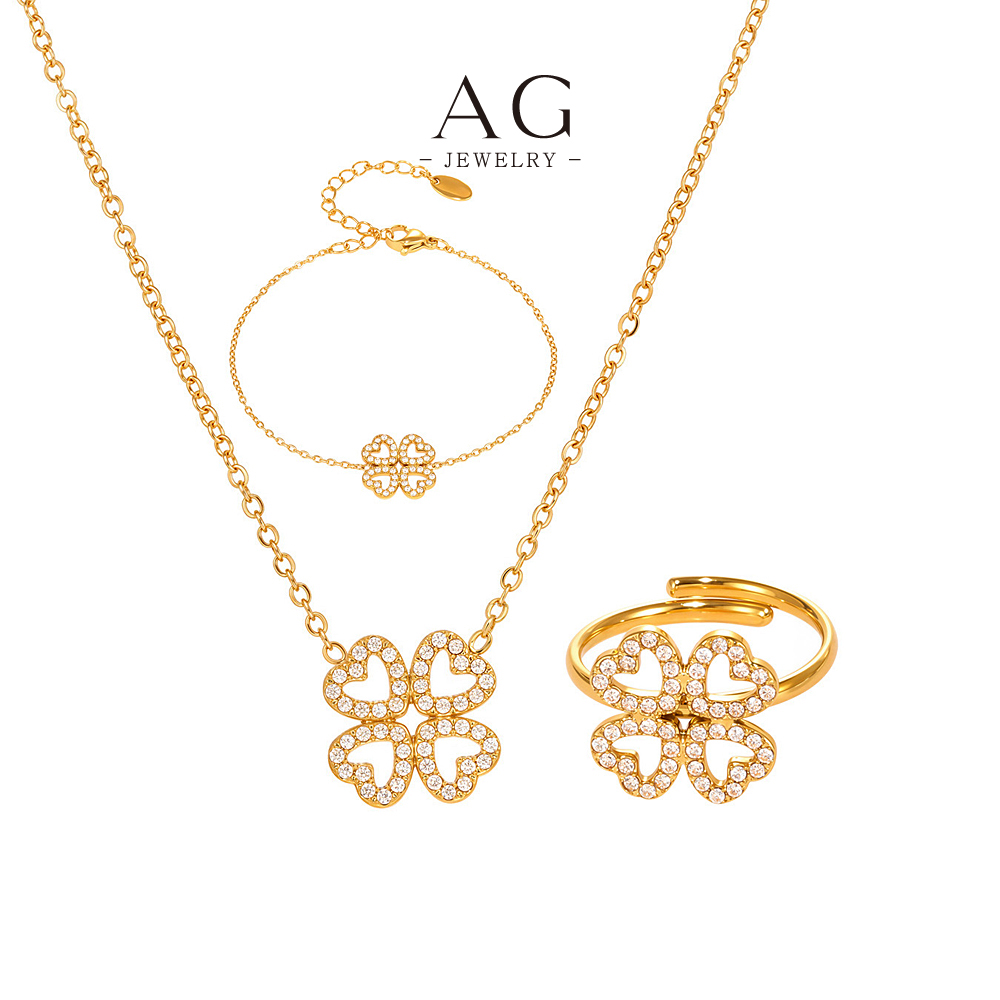 AG Lucky Clover Jewelry Set Necklace Bracelet Ring Good Fortune Collection AGTXP296