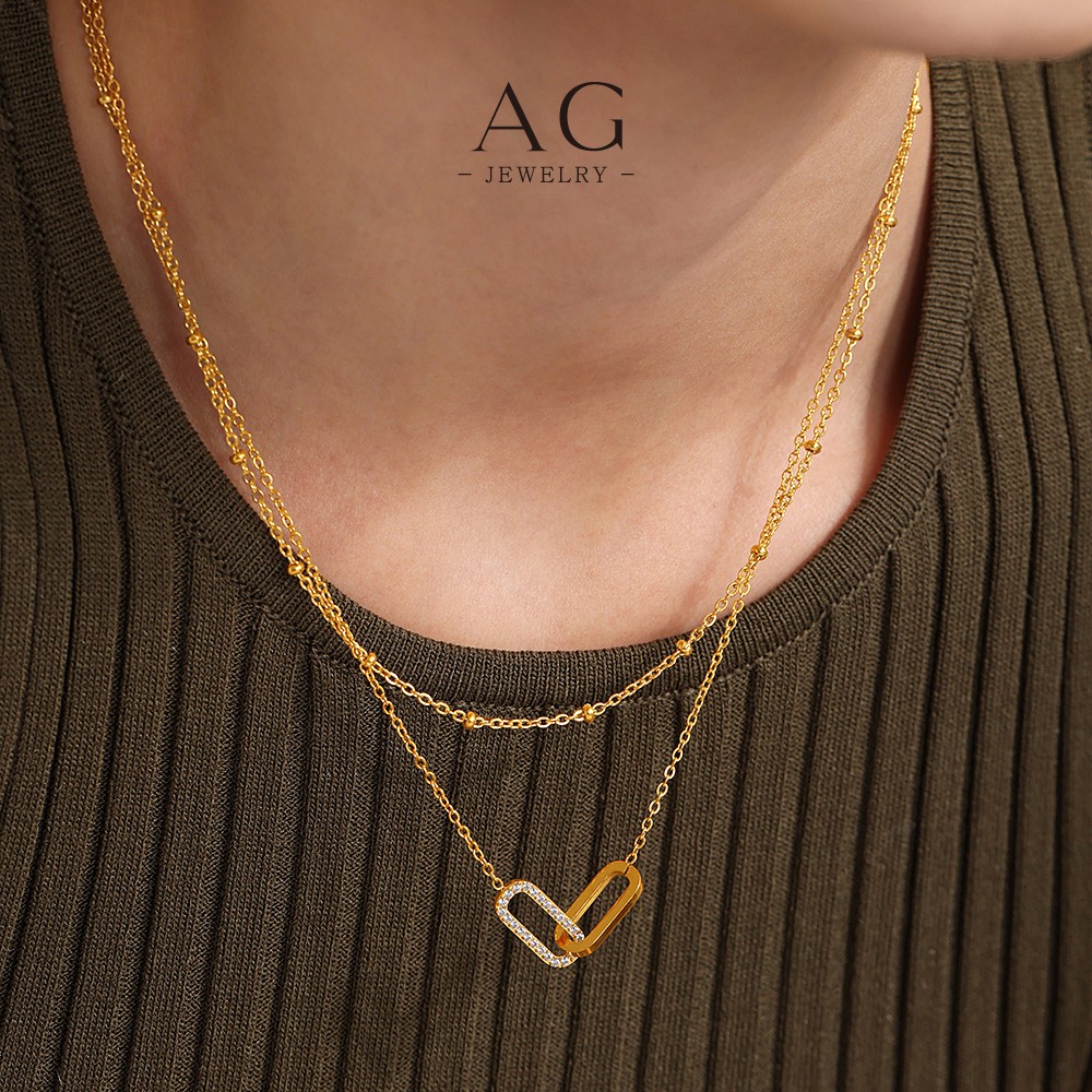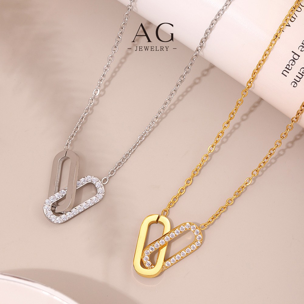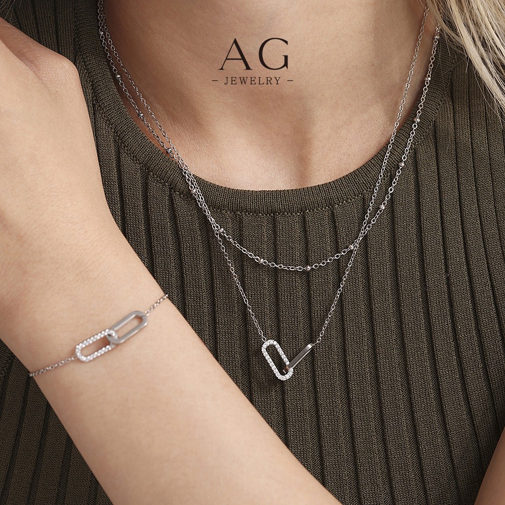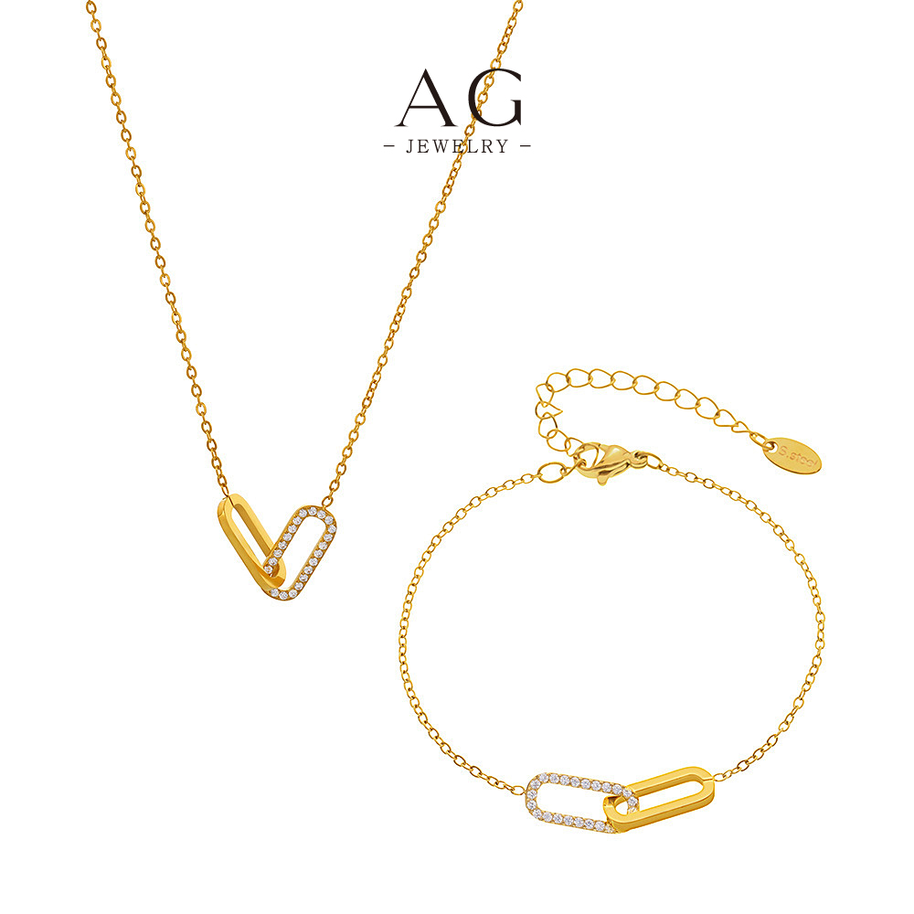 AG Double Oval Heart Shape Jewelry Set Necklace Bracelet Earrings Unique Love Design AGTXP238