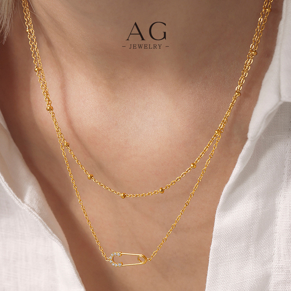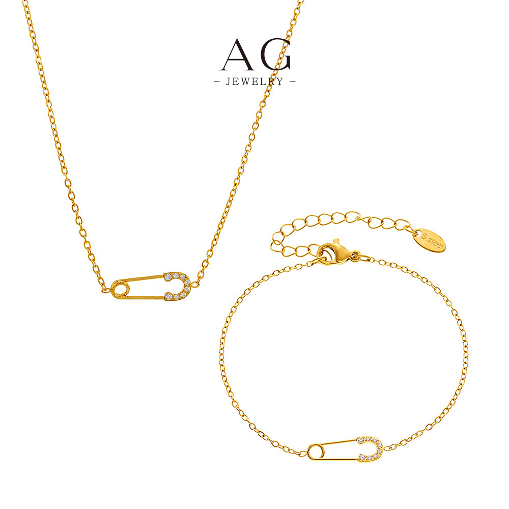 AG Paperclip Design Jewelry Set Necklace Bracelet Modern Industrial Collection AGTXP233