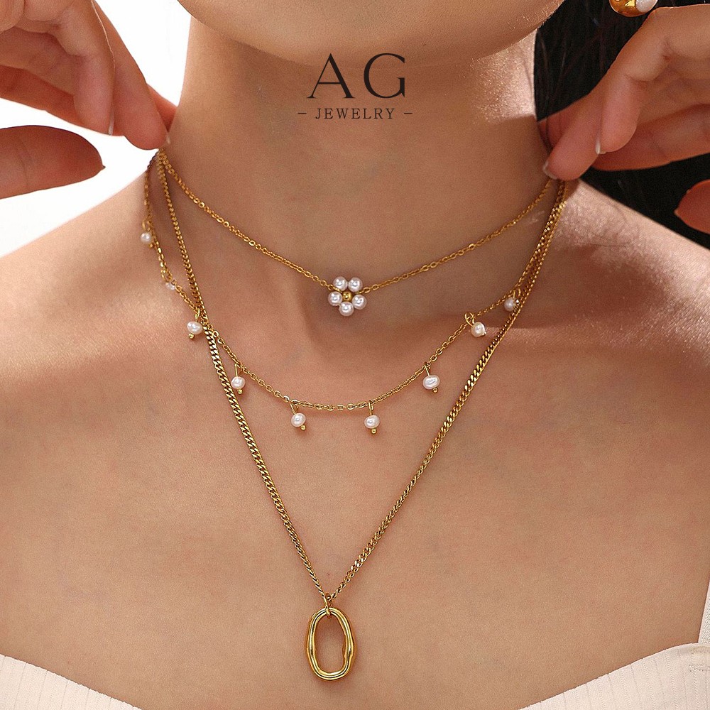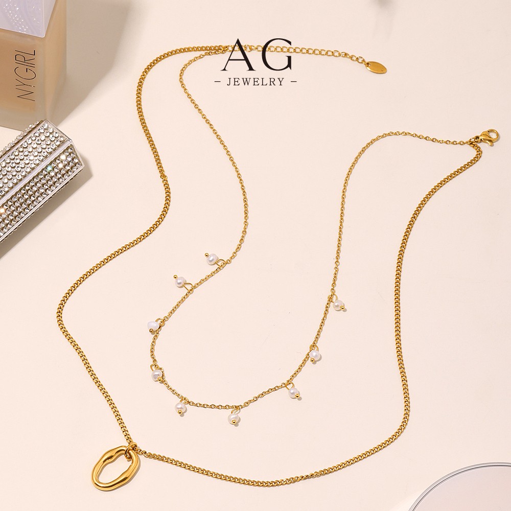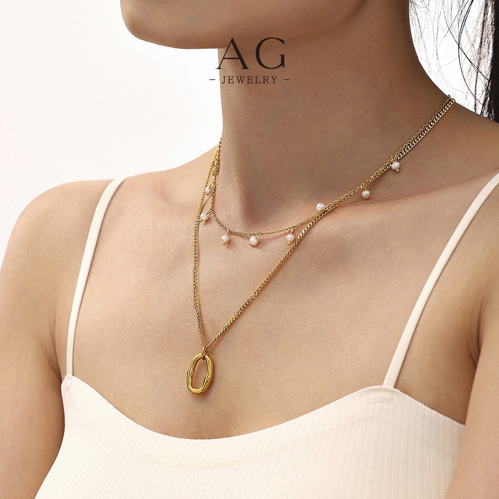 AG Pearl Oval Double Layer Necklace Low MOQ Jewelry Manufacturer AGP2034
