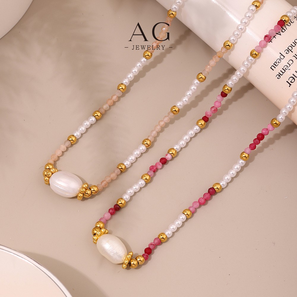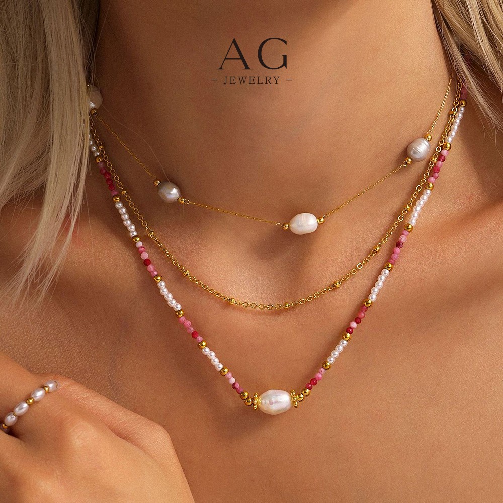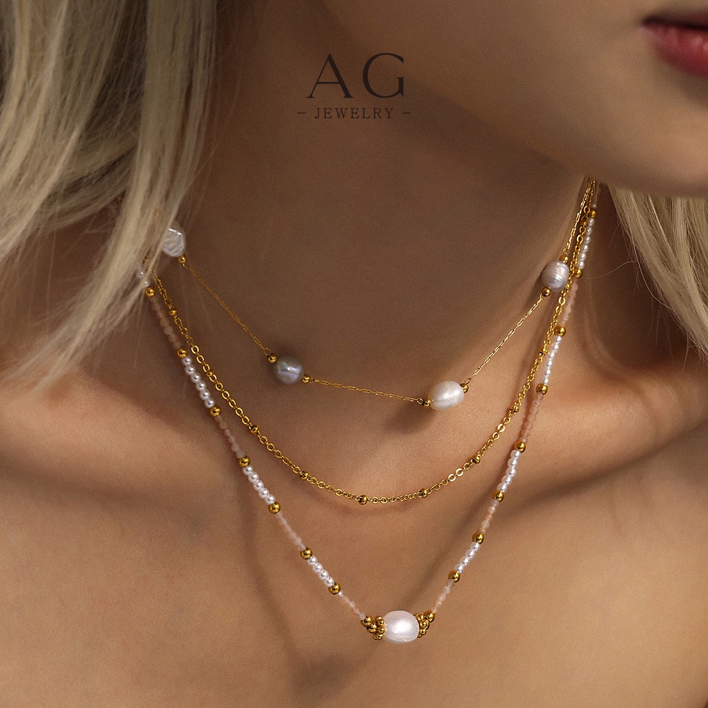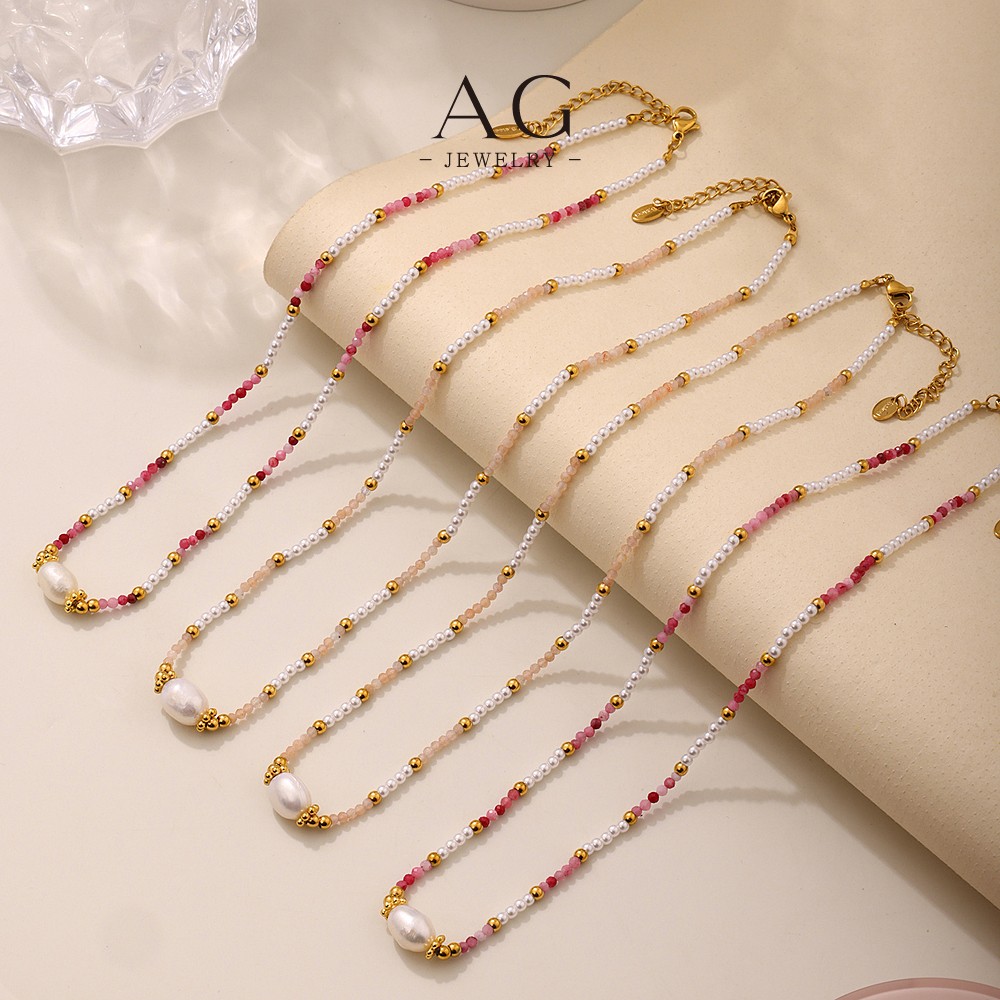 AG Stainless Steel Beaded Necklace Collection Multicolor Stackable Jewelry for Women AGP1993