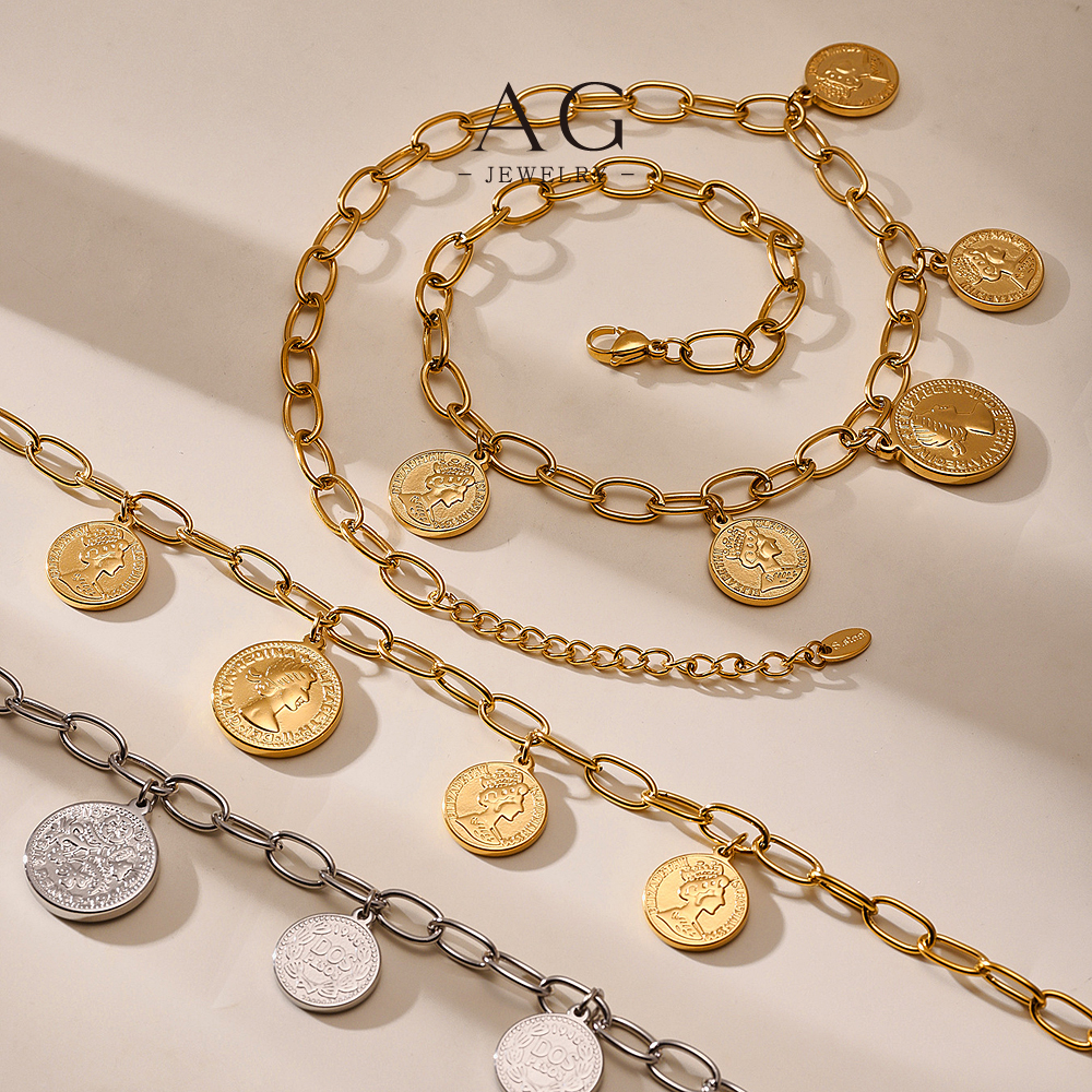 AG Stainless Steel Coin Pendant Necklace Vintage Custom Jewelry AGP840