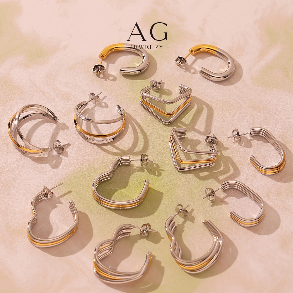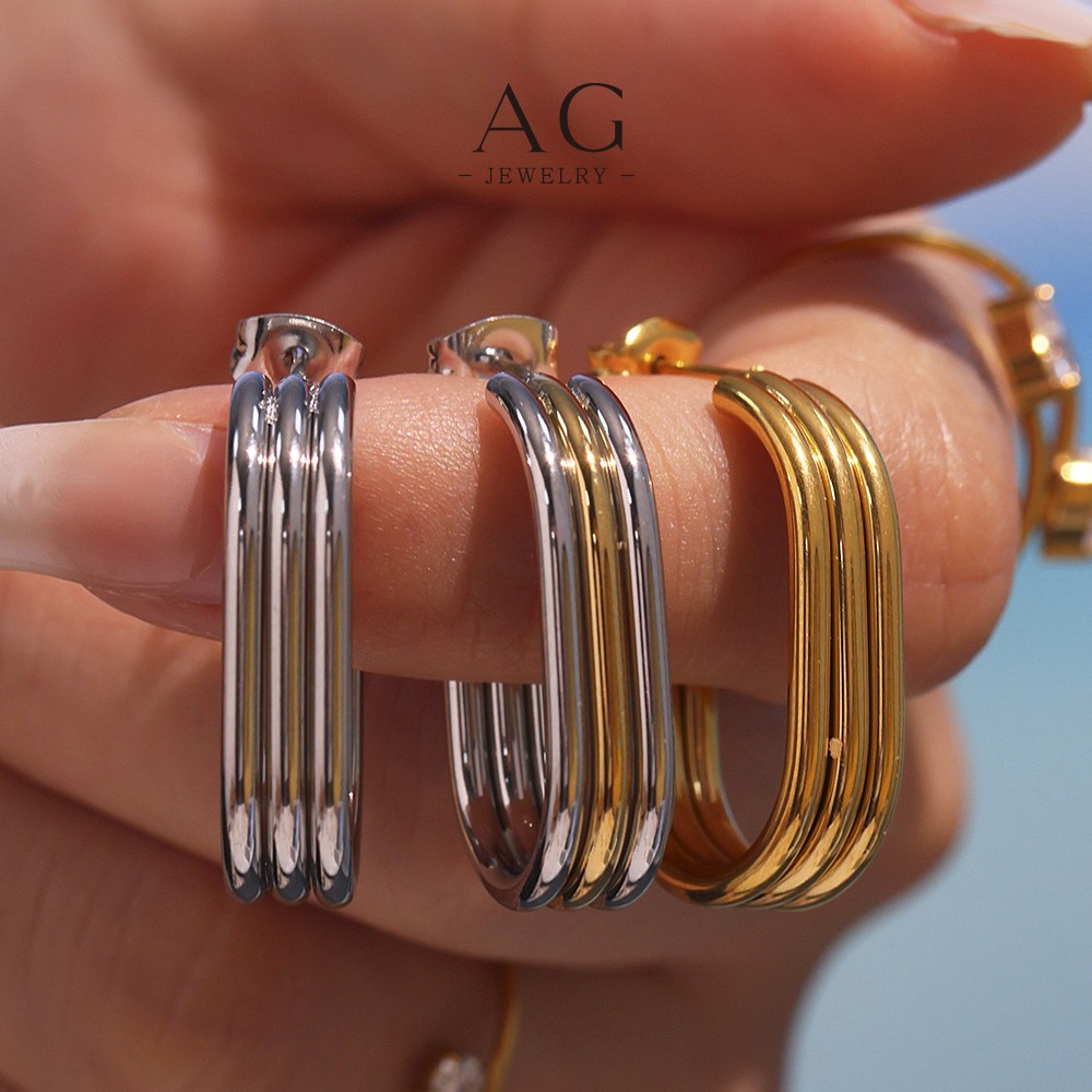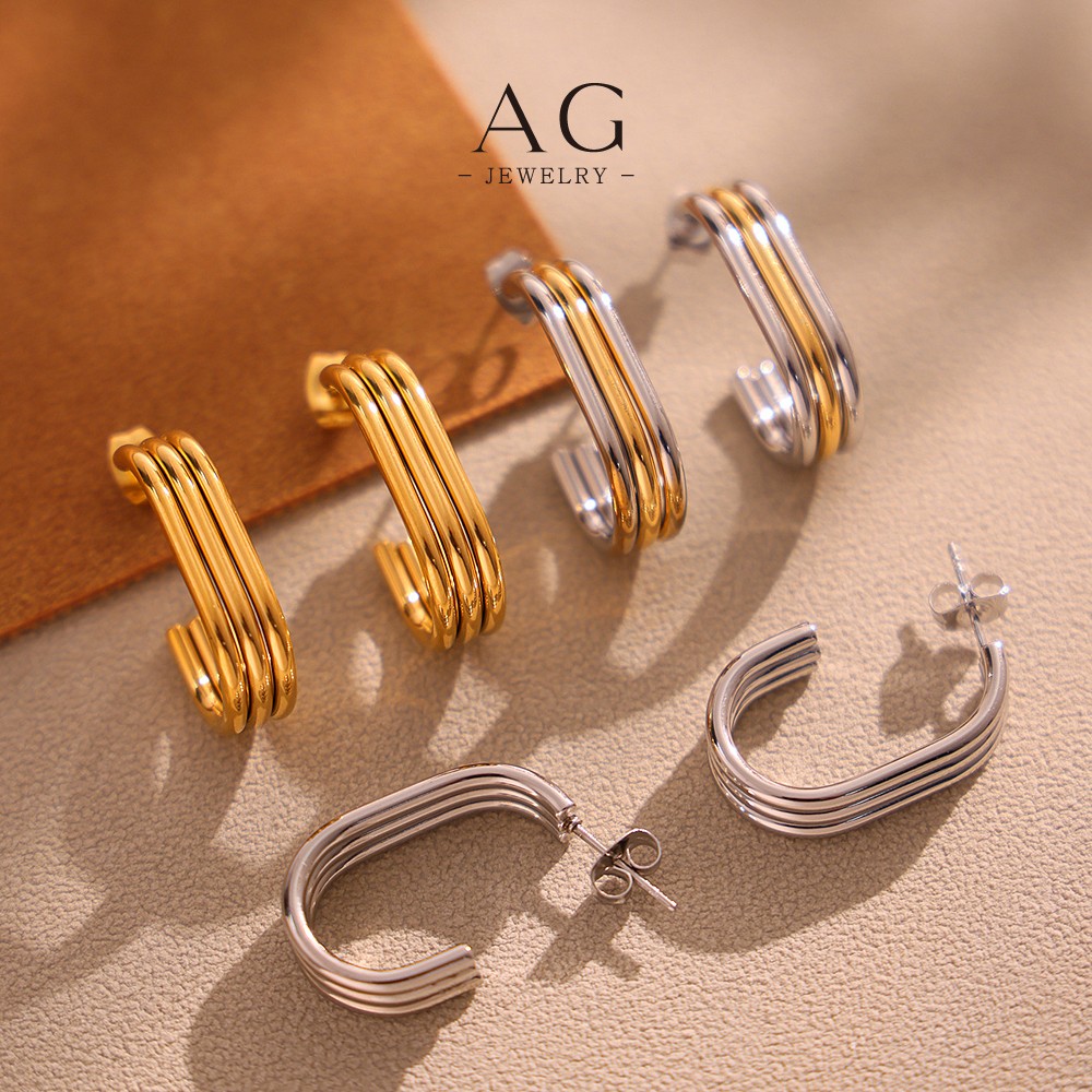 AG Stainless Steel Triple Wire Braided Earrings Modern Textured Design AGF263