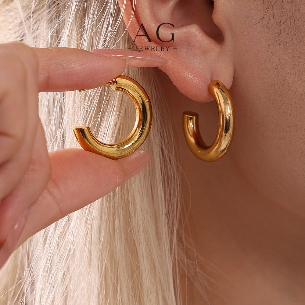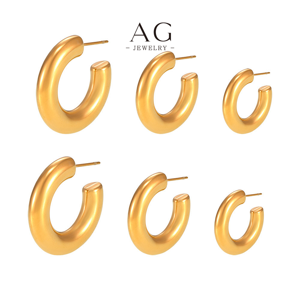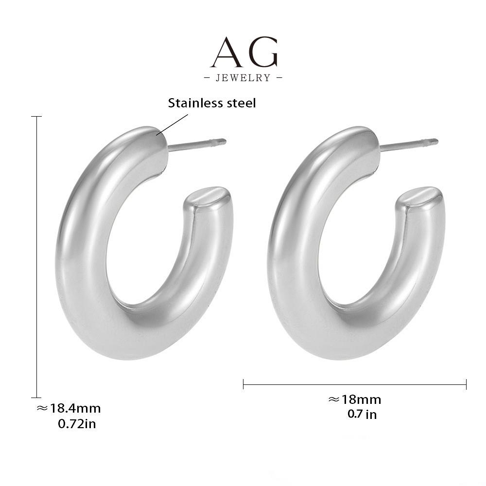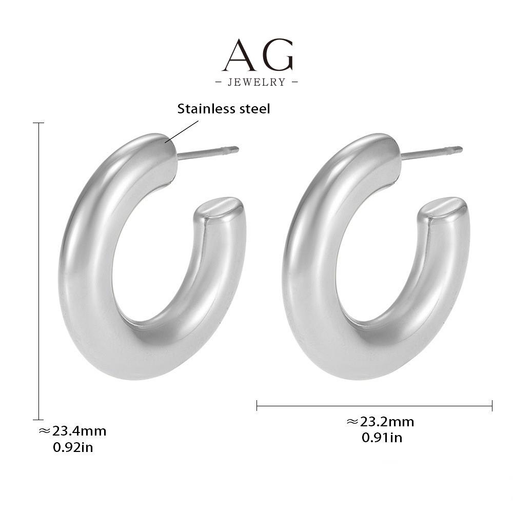 AG Stainless Steel Hollow C Shape Hoop Earrings Lightweight Minimalist AGF1715