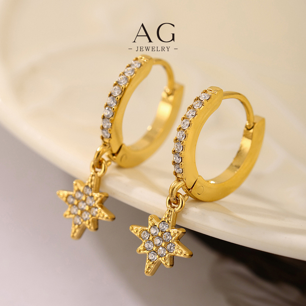 AG Stainless Steel Sunflower Zirconia Stud Earrings Happy Summer Gift AGF1686