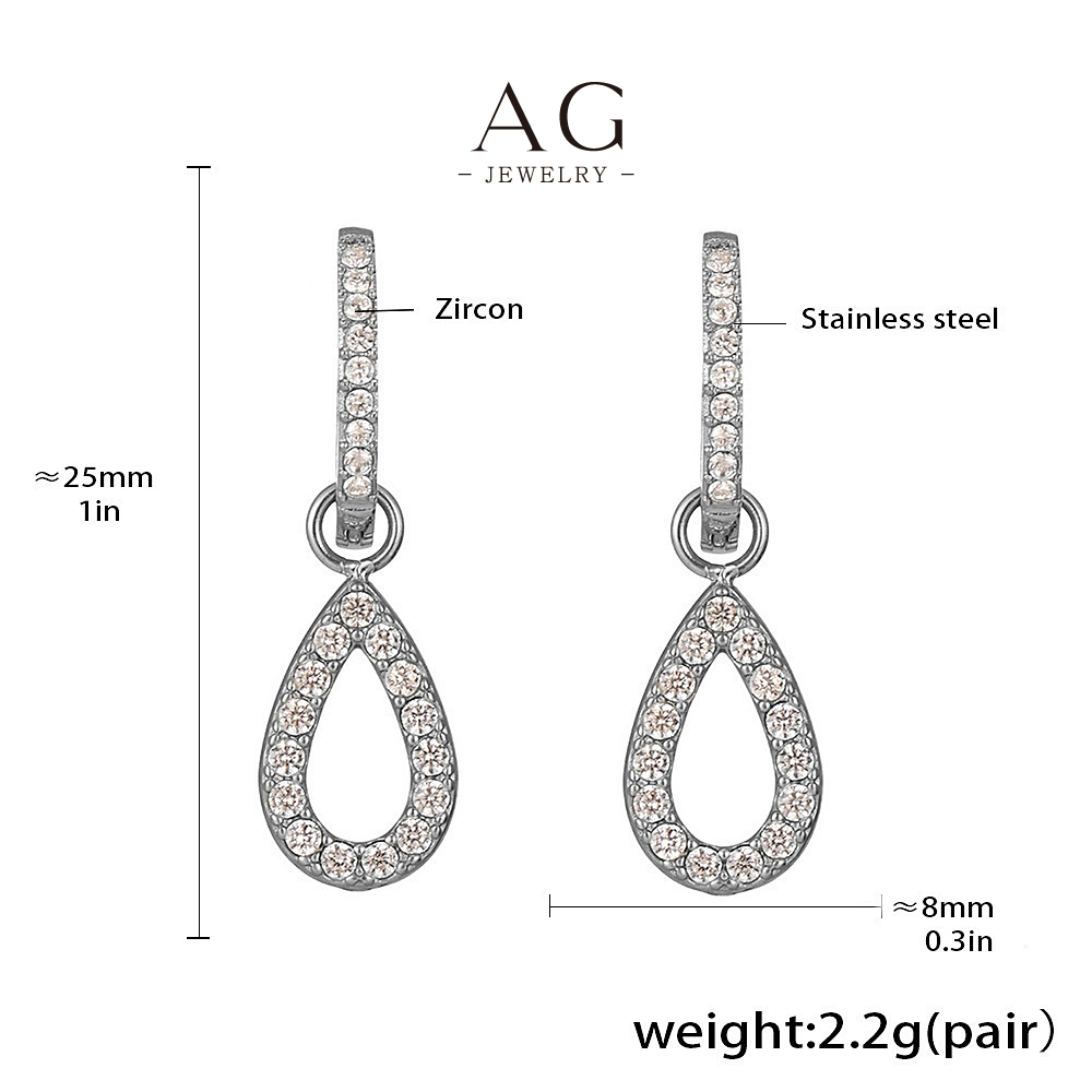 AG Stainless Steel Teardrop Zirconia Earrings Red Carpet Elegance AGF1685