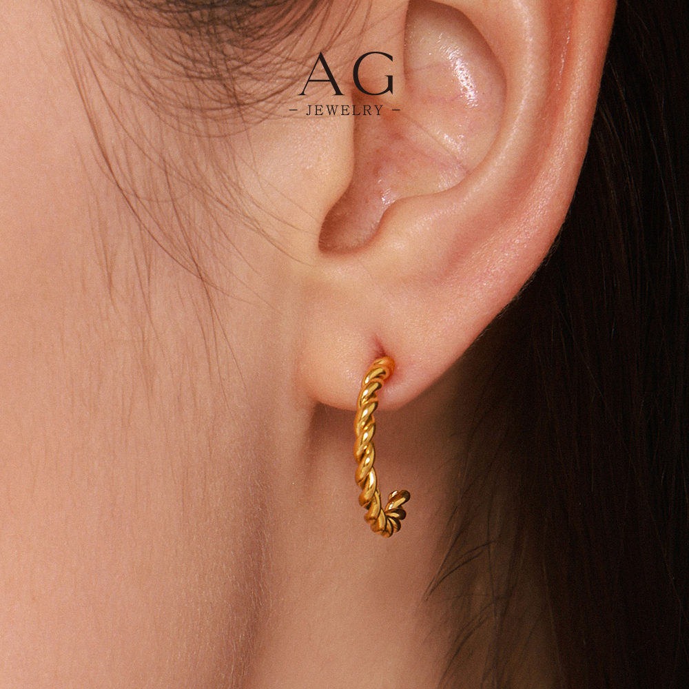 AG Textured C Shape Hoop Earrings Modern Geometric Collection AG JEWELRY AGF1418