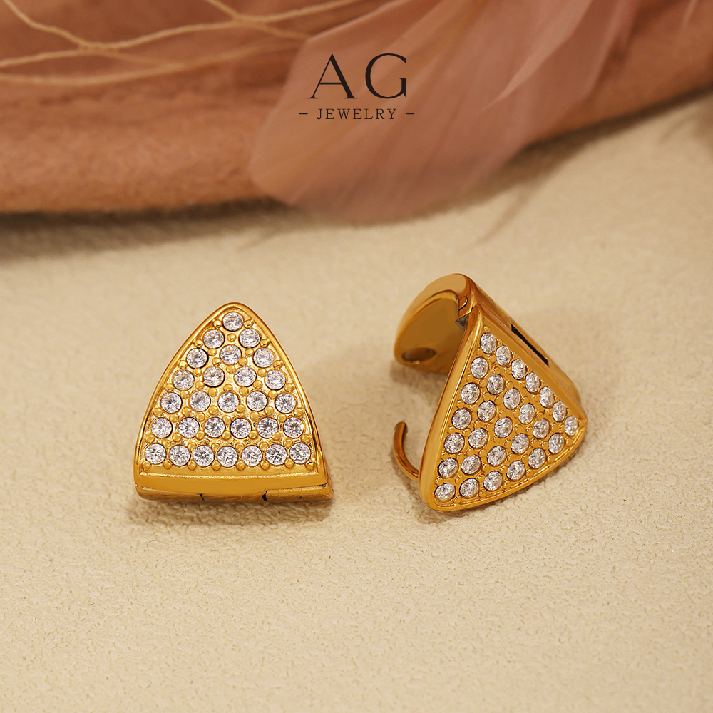 AG Stainless Steel Triangle Zirconia Earrings Geometric Statement Jewelry AGF1186