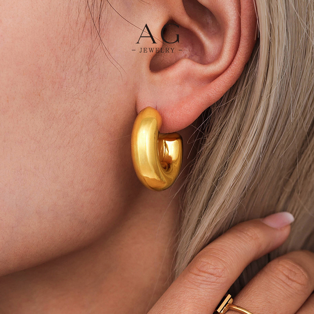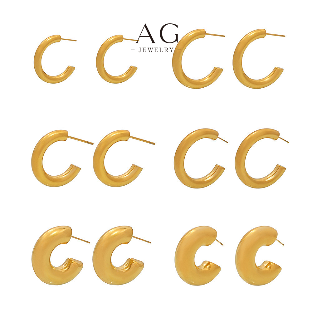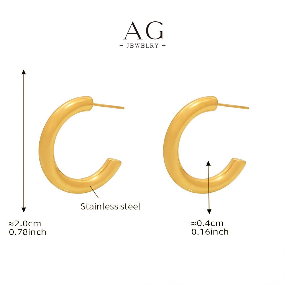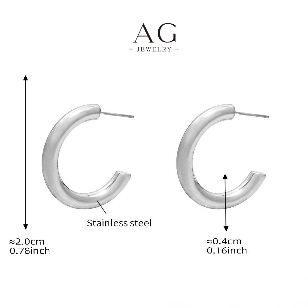 AG Stainless Steel C Shape Hoop Earrings Minimalist Geometric Jewelry AGF1016