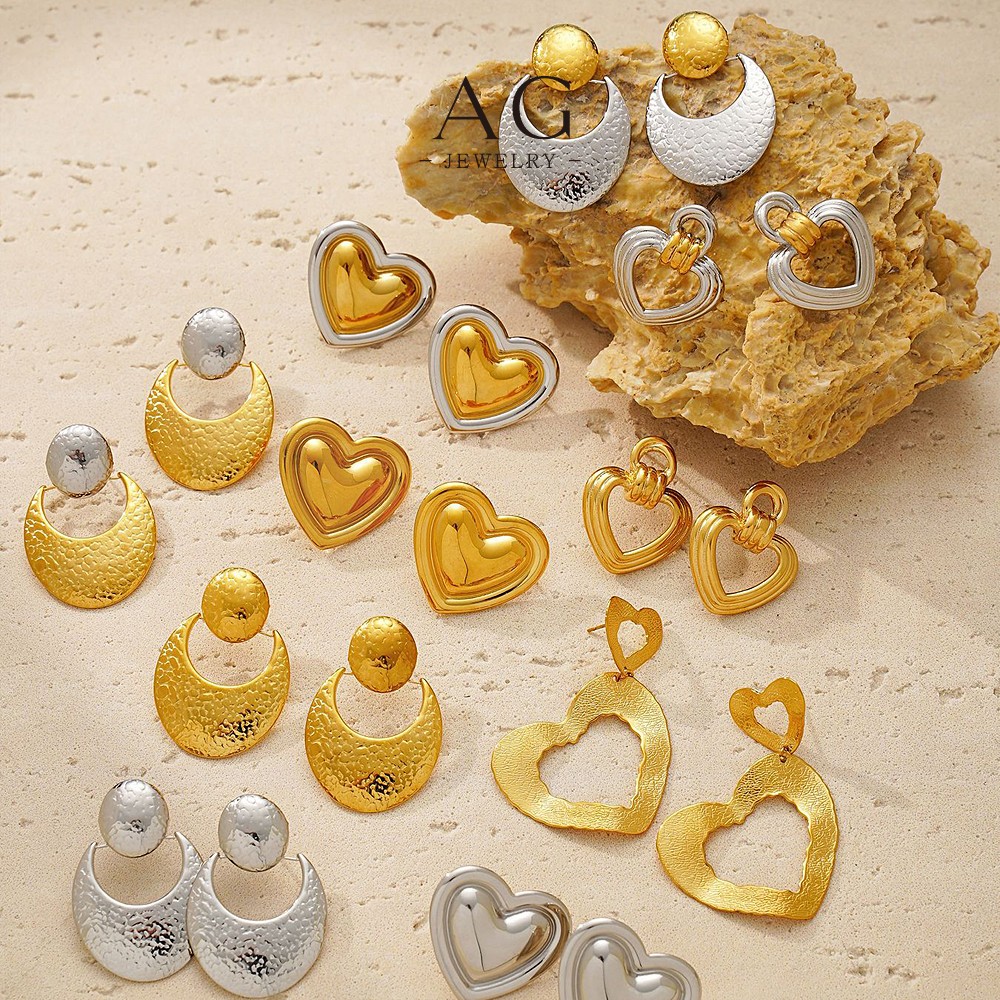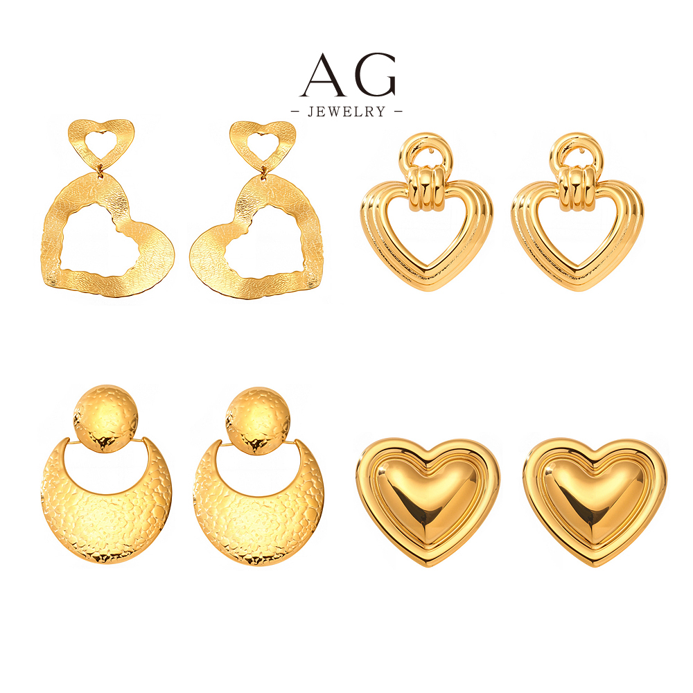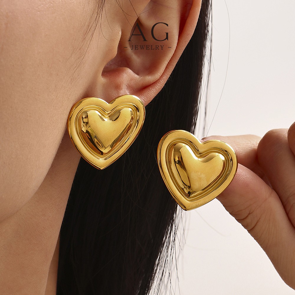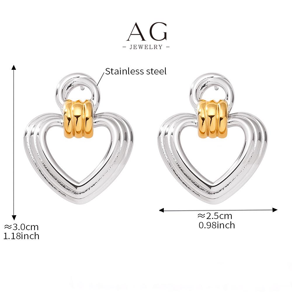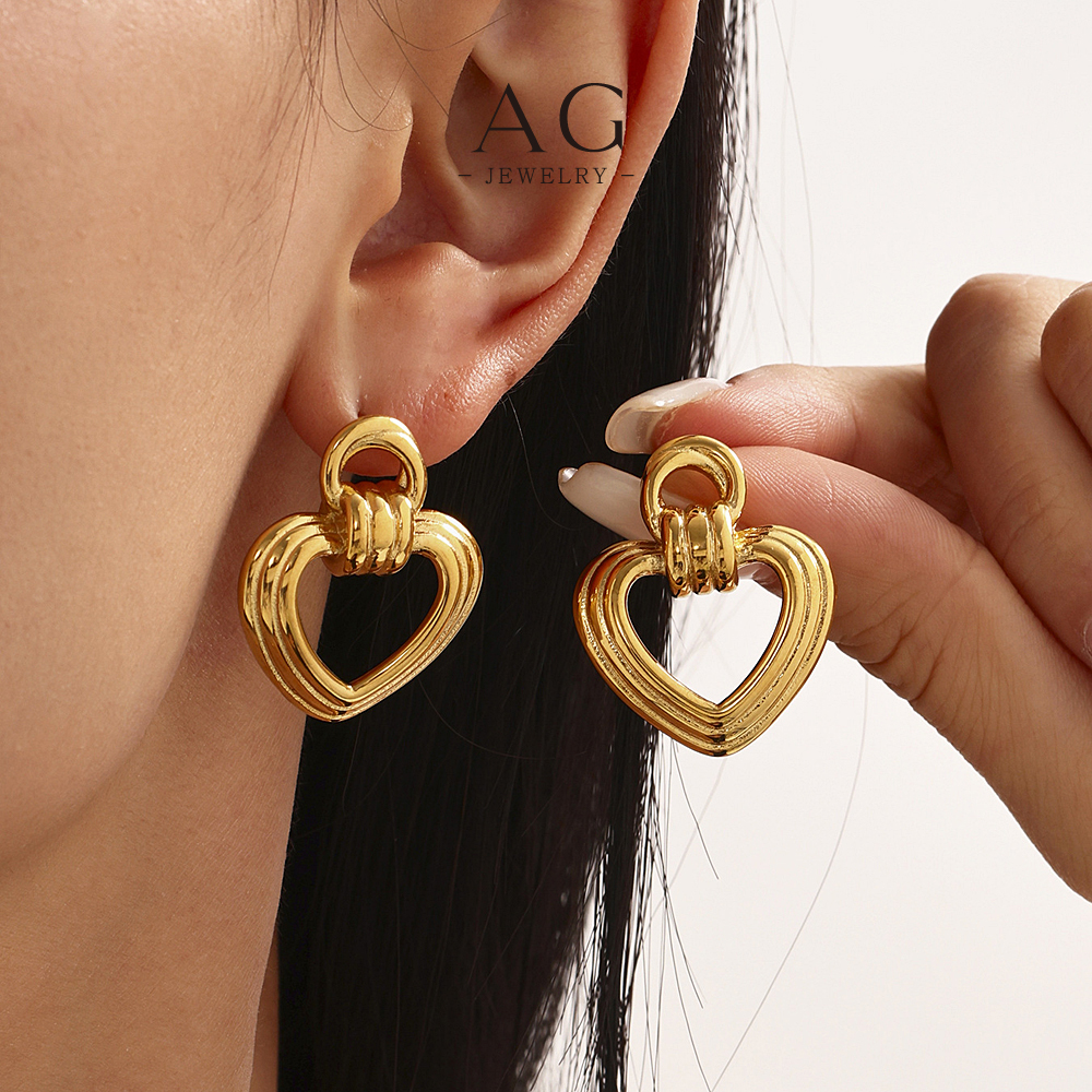 G Stainless Steel Open Heart Earrings Minimalist Dainty Jewelry AGF384