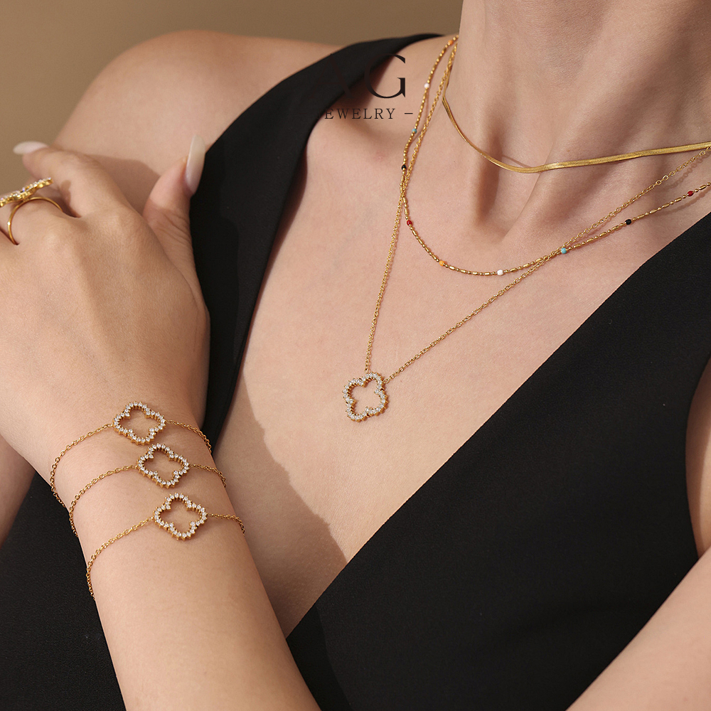 AG Four Leaf Clover Jewelry Set Lucky Charm Green Theme Collection AGTXE305