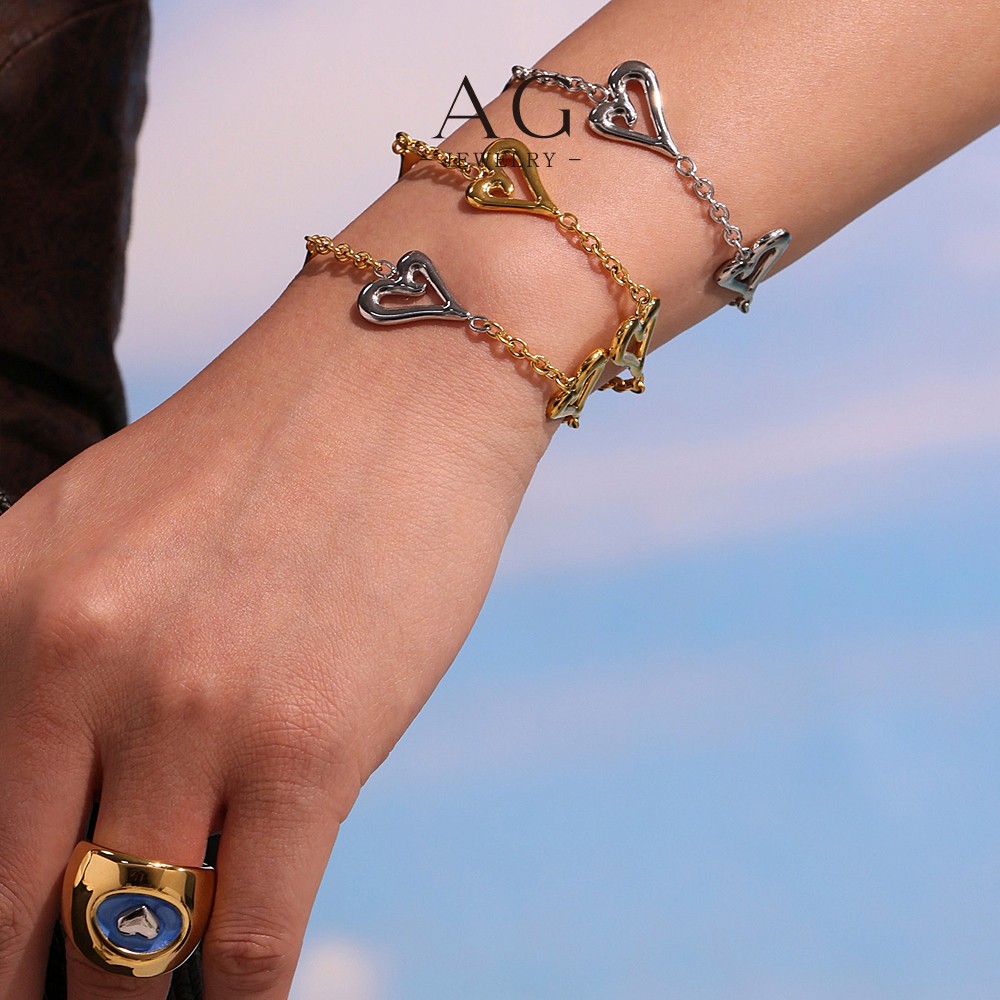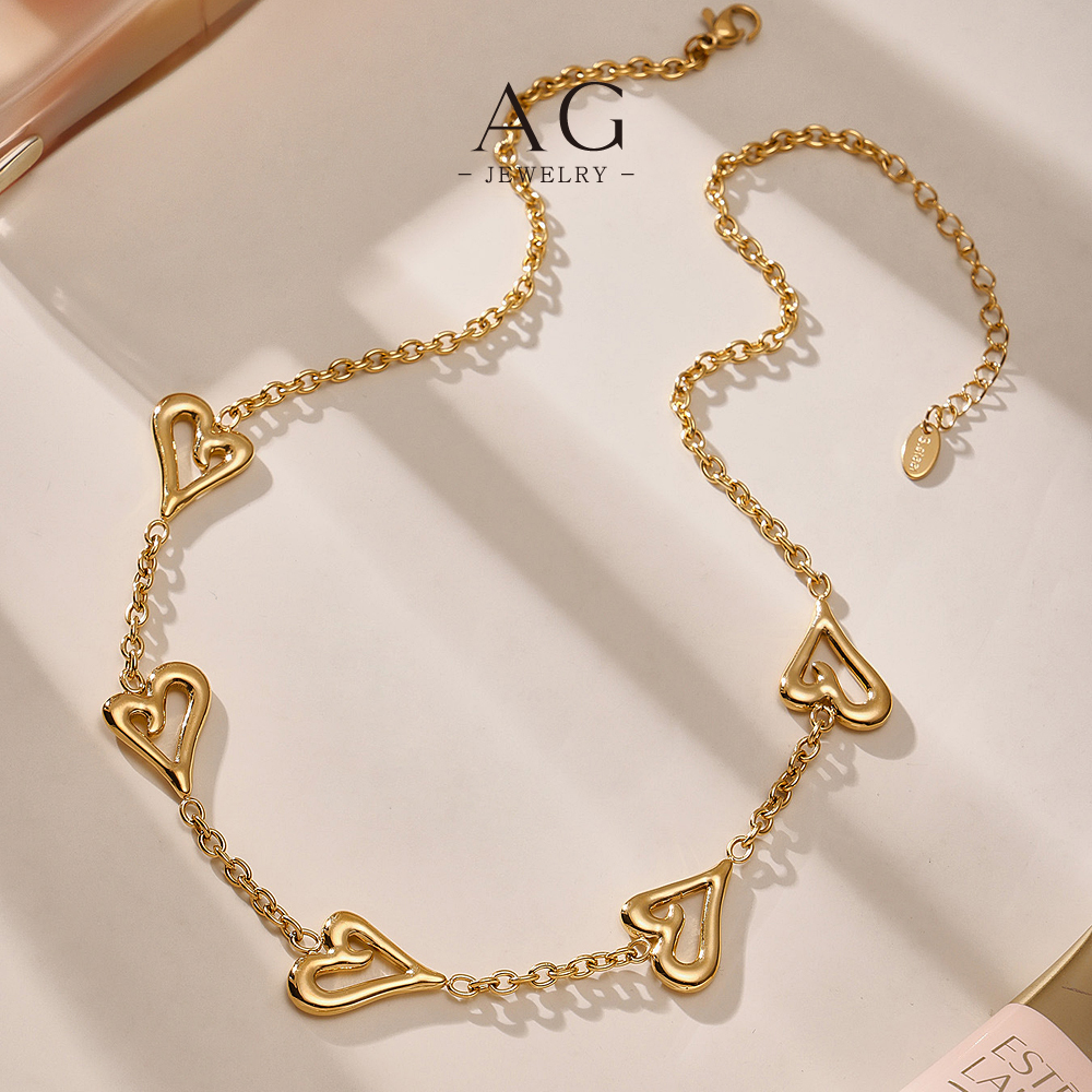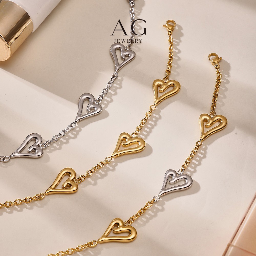 AG Multi Charm Heart Shape Jewelry Set Necklace Bracelet Earrings Romantic Gift Collection AGTXE267