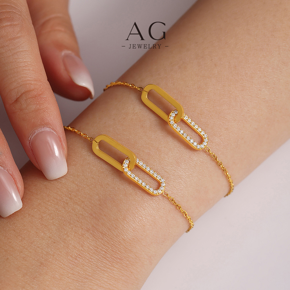 AG Double Oval Heart Shape Jewelry Set Necklace Bracelet Earrings Unique Love Design AGTXE238