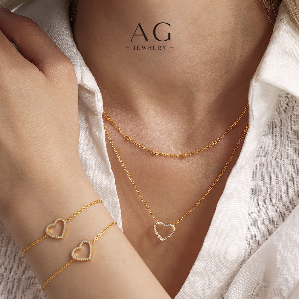 AG Hollow Heart Shape Jewelry Set Necklace Bracelet Delicate Openwork Design AGTXE234