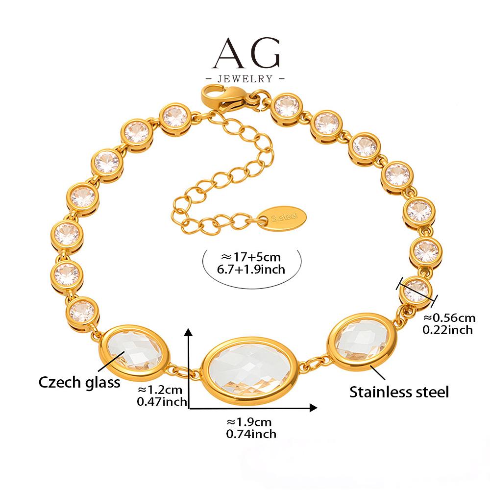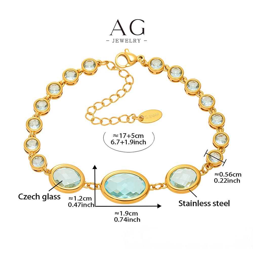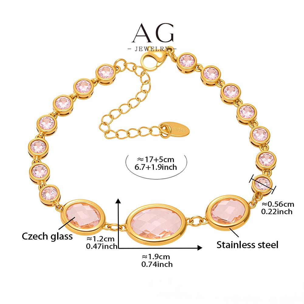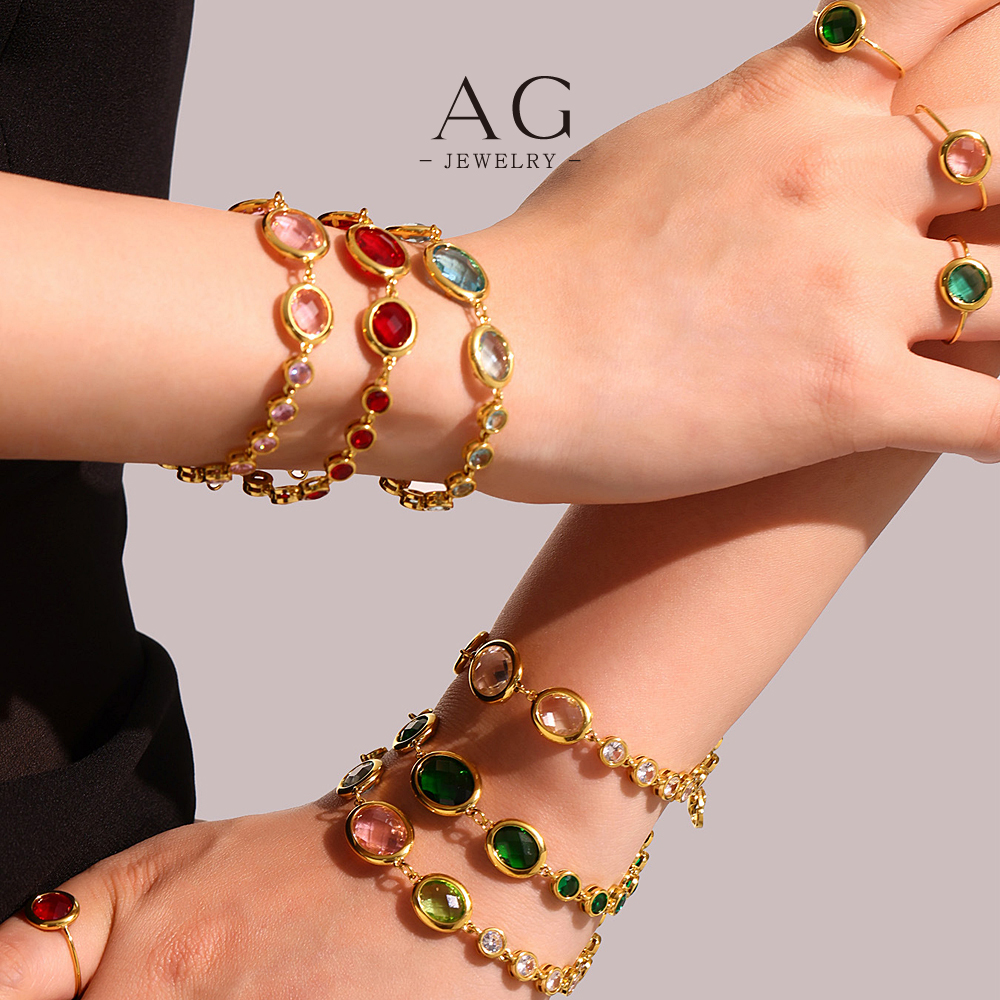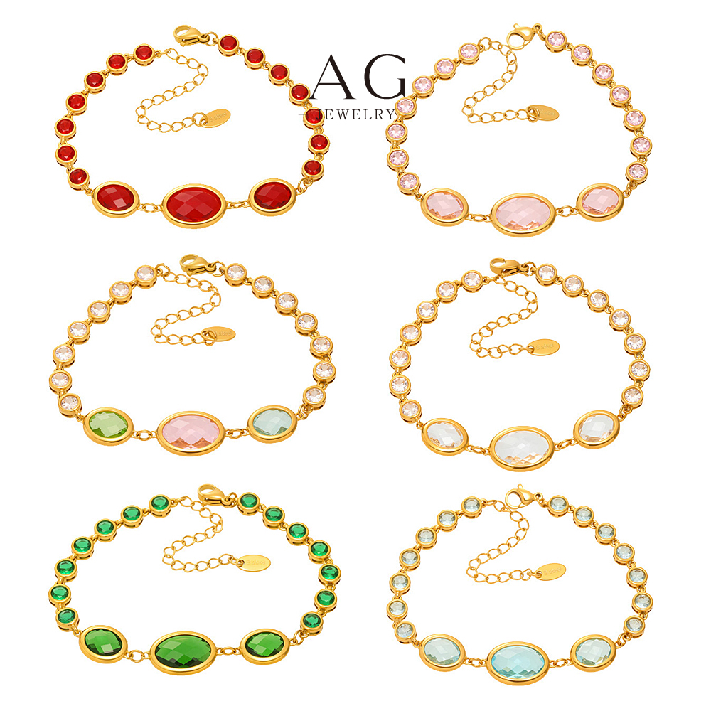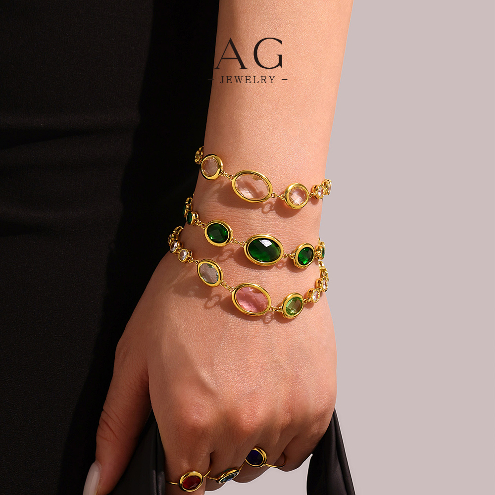 AG Stainless Steel Multi Color Oval Zirconia Bracelet Full Crystal Collection AGE655