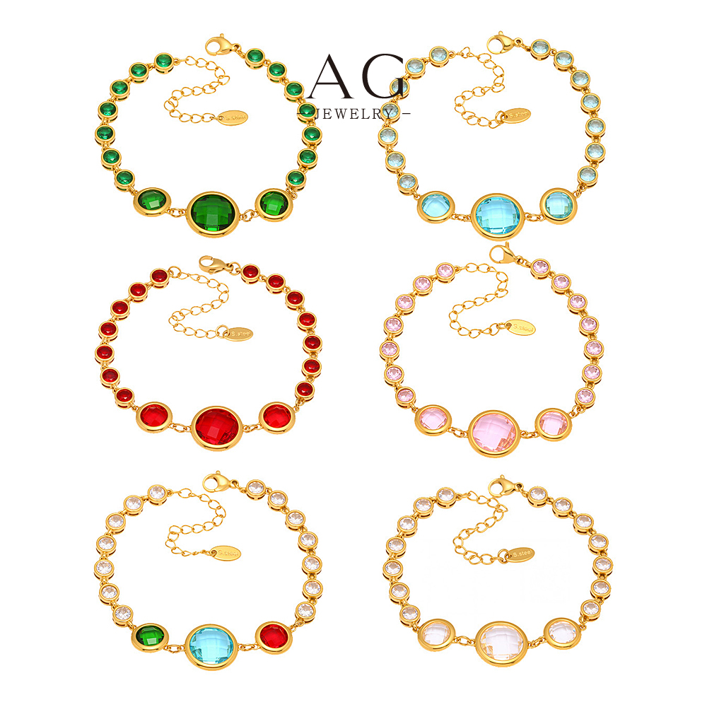 AG Stainless Steel Multi Color Full Zirconia Bracelet Rainbow Crystal Collection AGE653