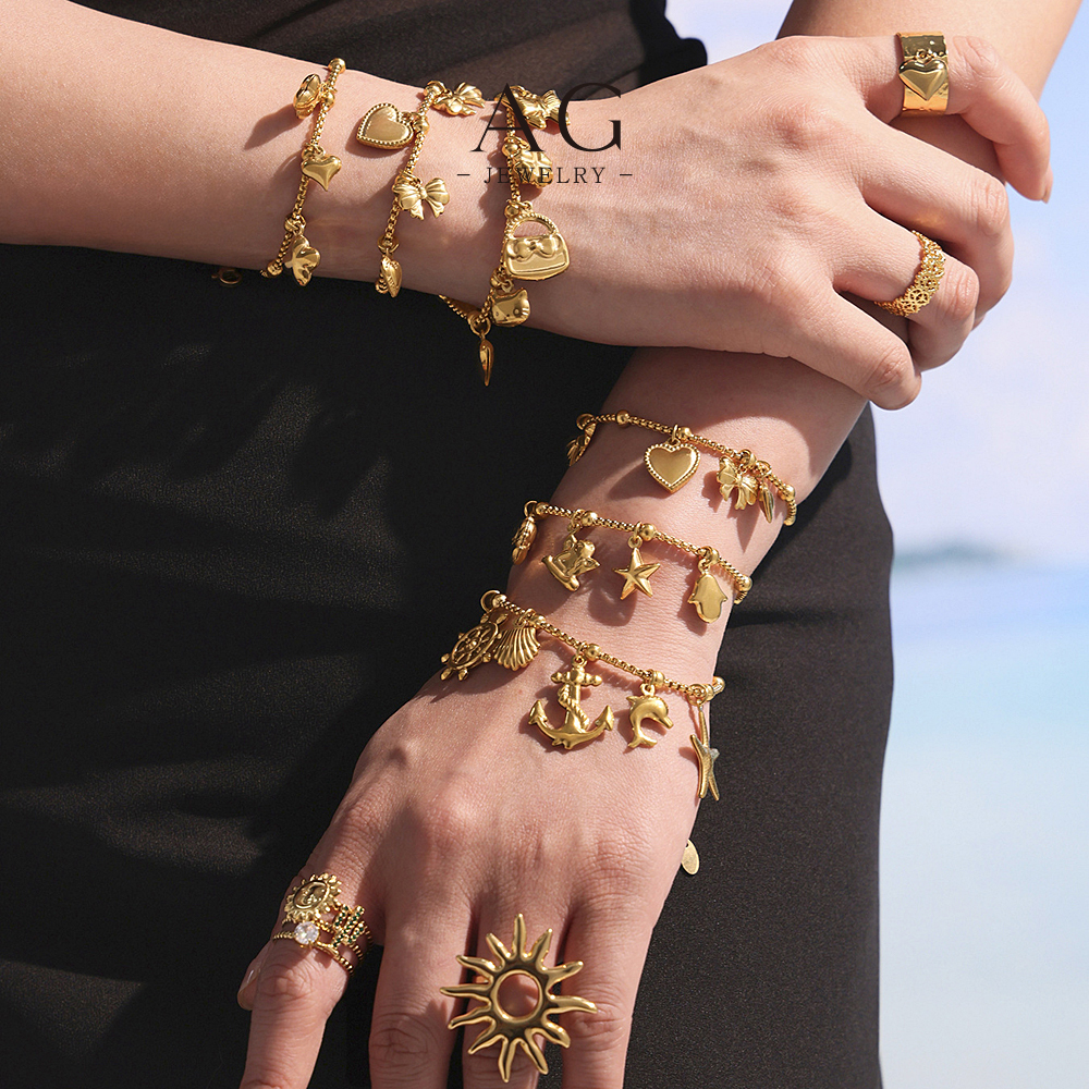 AG Stainless Steel Minimalist Multi Charm Bracelet Dainty Stacking Collection AG JEWELRY AGE652