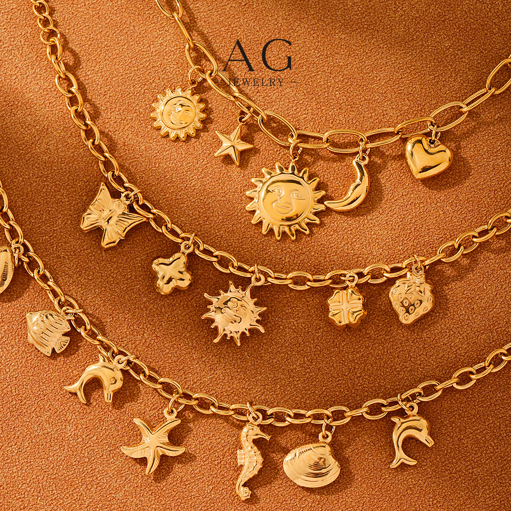 AG Stainless Steel Ocean Theme Charm Bracelet Nautical Beach Jewelry AGE636