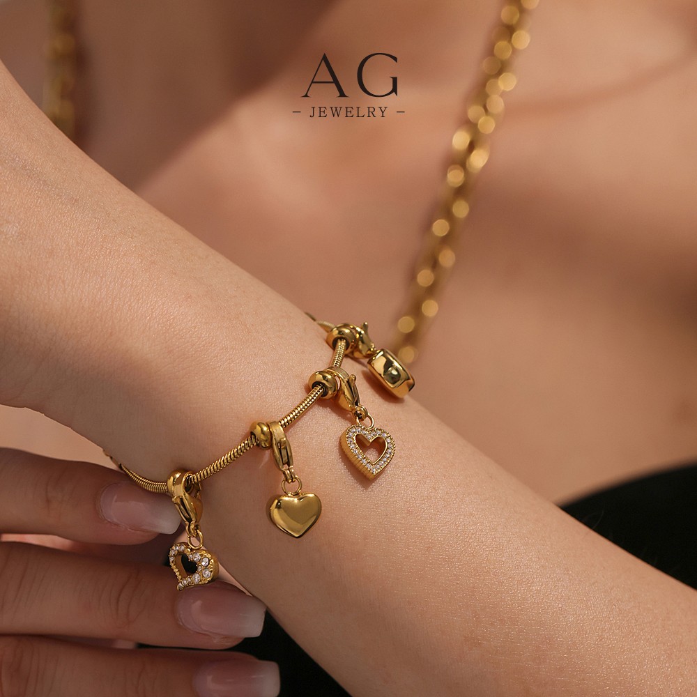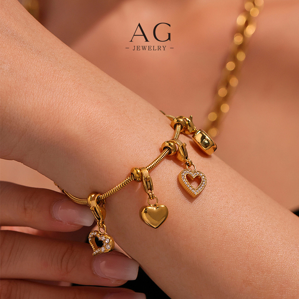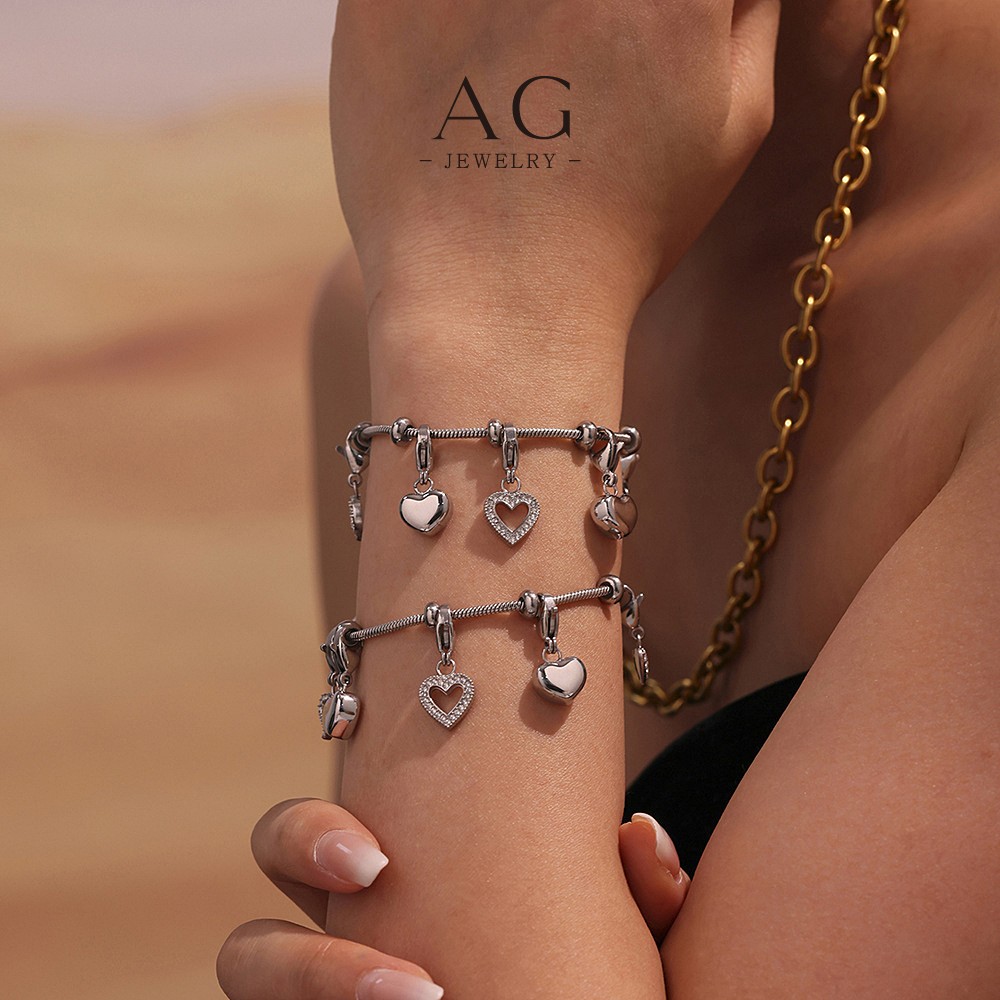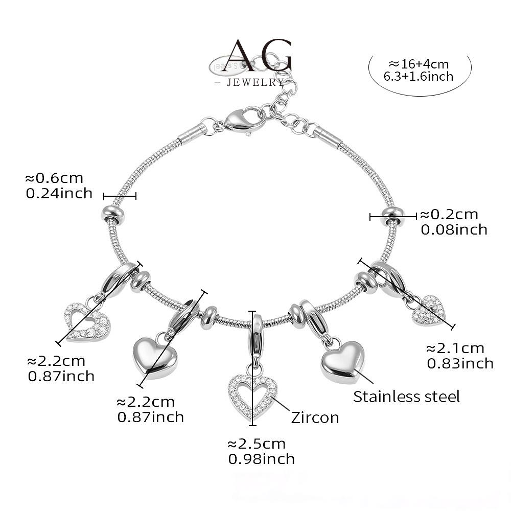 AG Stainless Steel Multi Heart Charm Bracelet Romantic Layered Gift AG JEWELRY AGE604