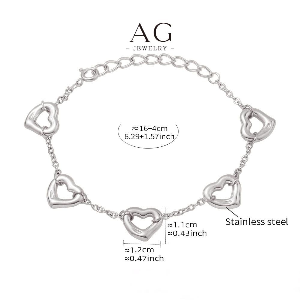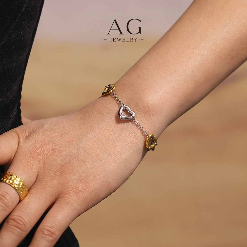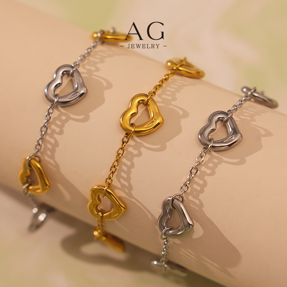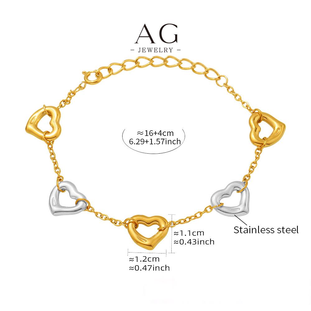 AG Stainless Steel 18K PVD Gold Plated Heart Charm Bracelet Romantic Gift AGE602