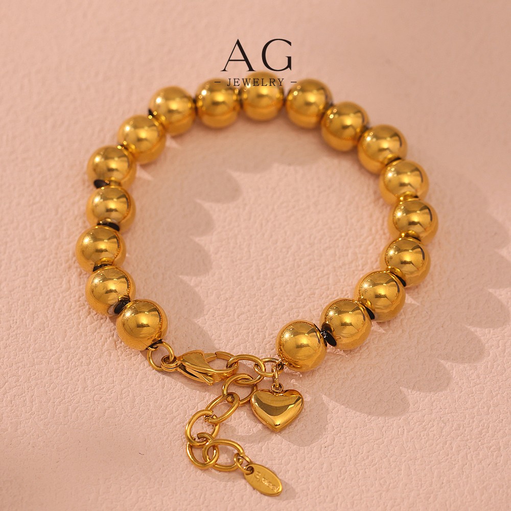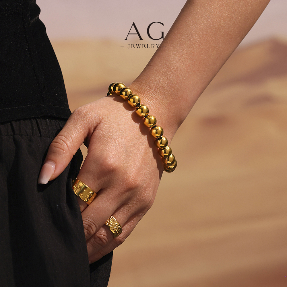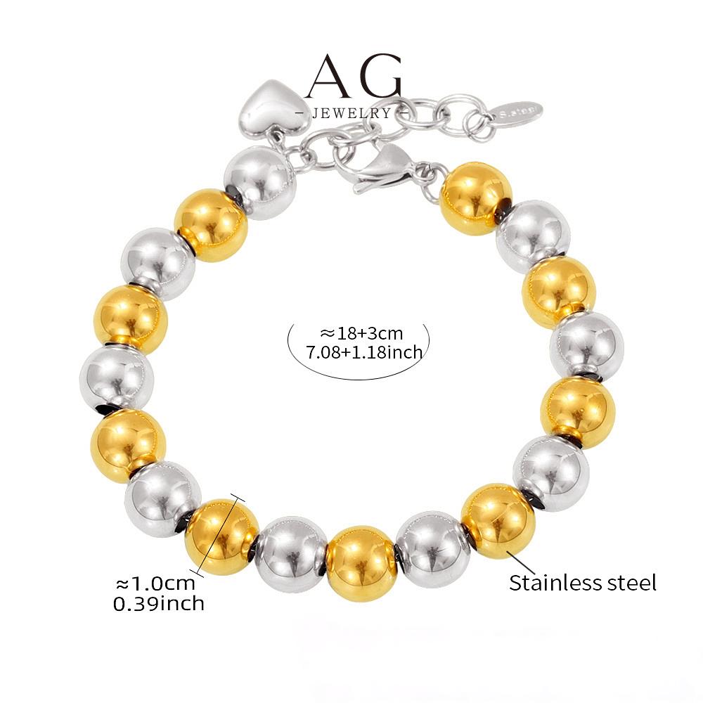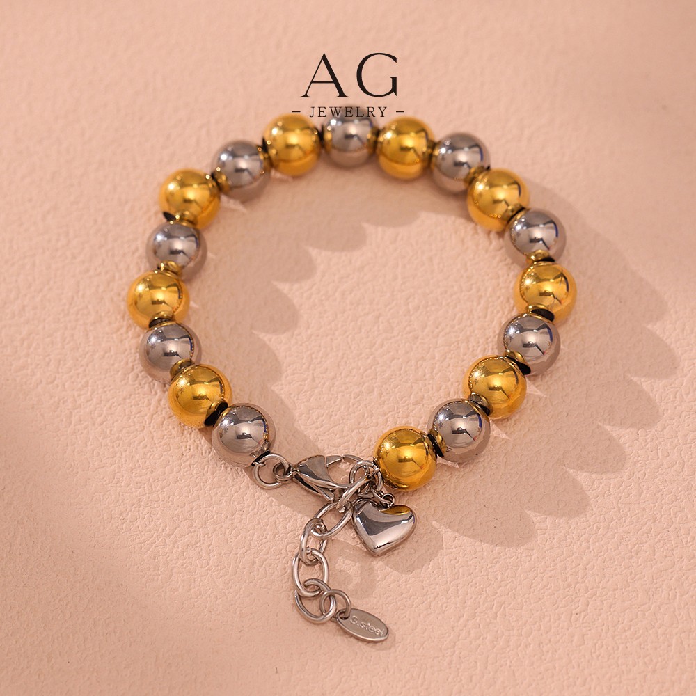 AG Stainless Steel Full Bead Bracelet Two Tone Plated Jewelry AGE601