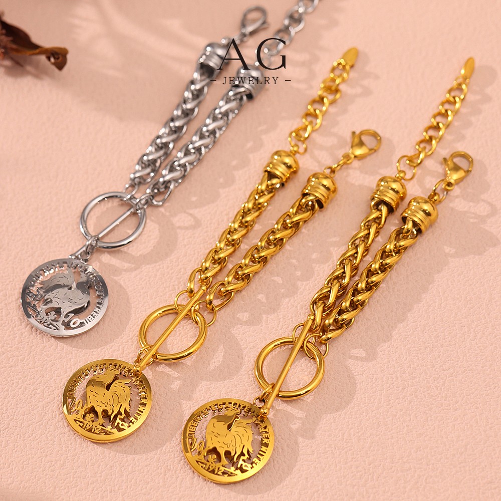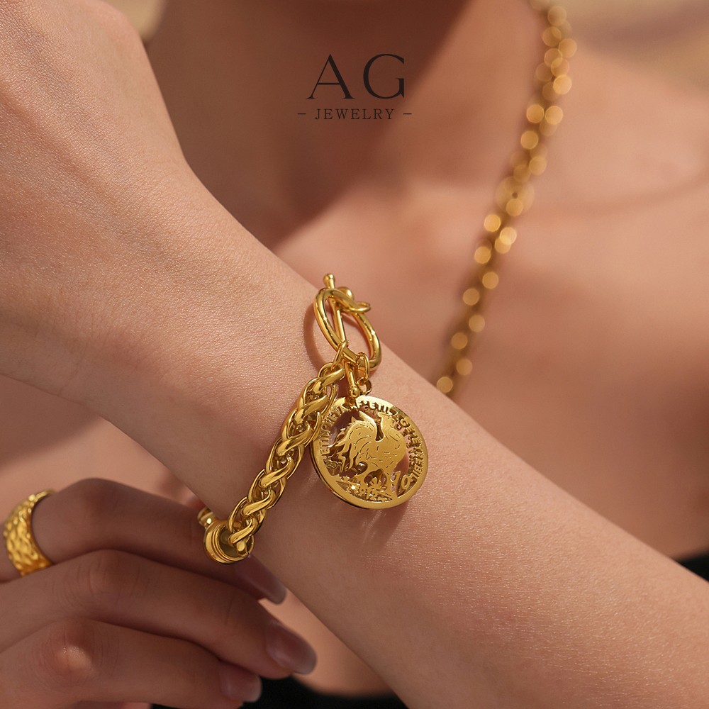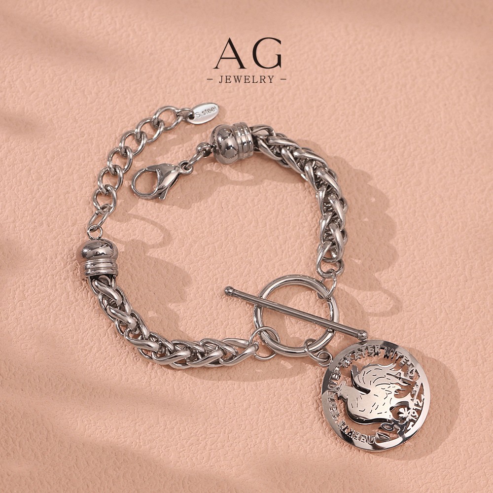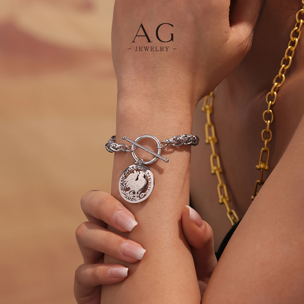 AG Stainless Steel OT Clasp Coin Charm Bracelet Roman Empire Style AGE598