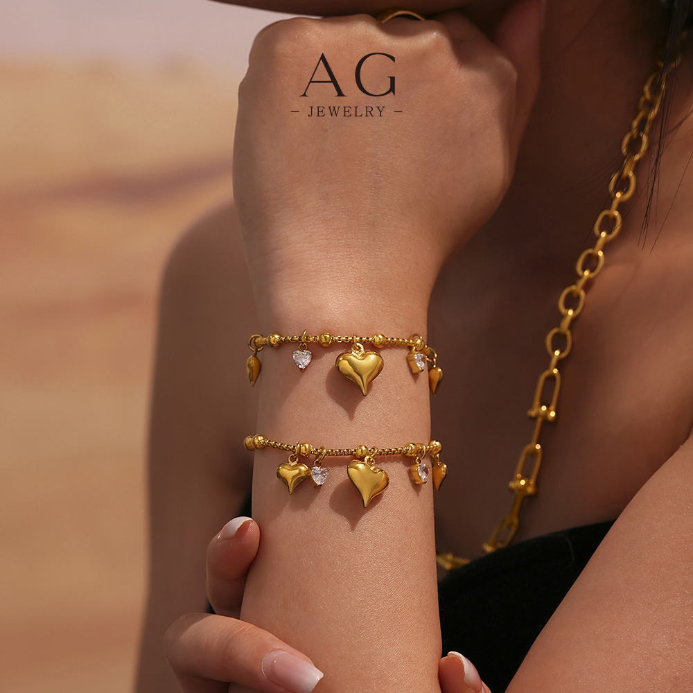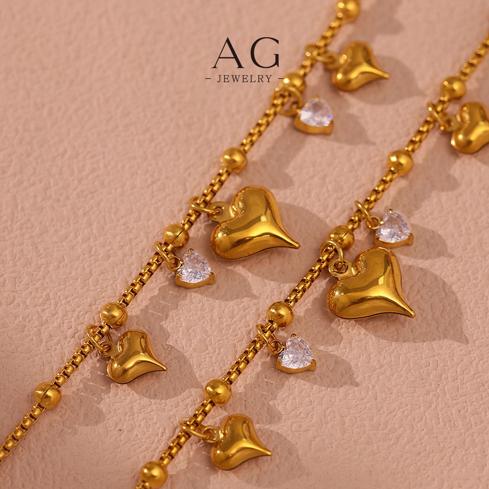 AG Stainless Steel Multi Pendant Heart Charm Bracelet Layered Gift Set AGE596
