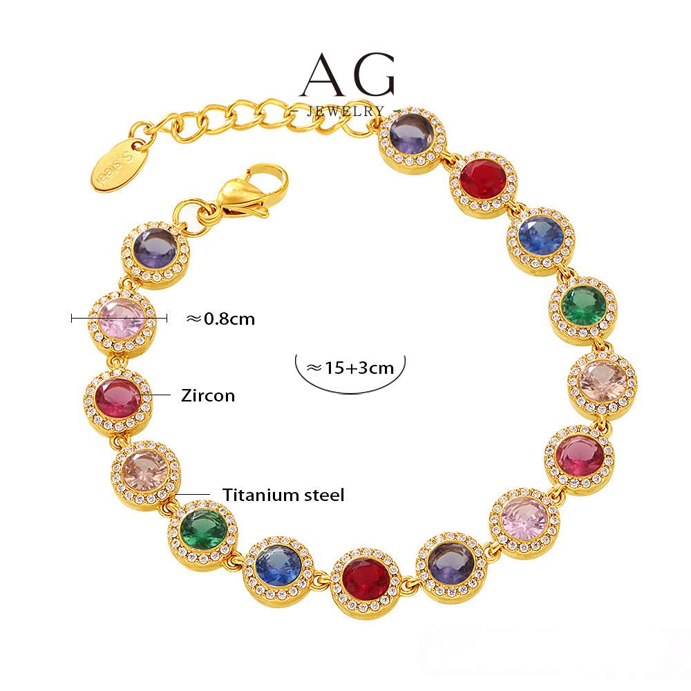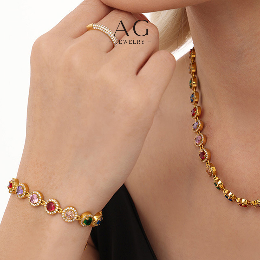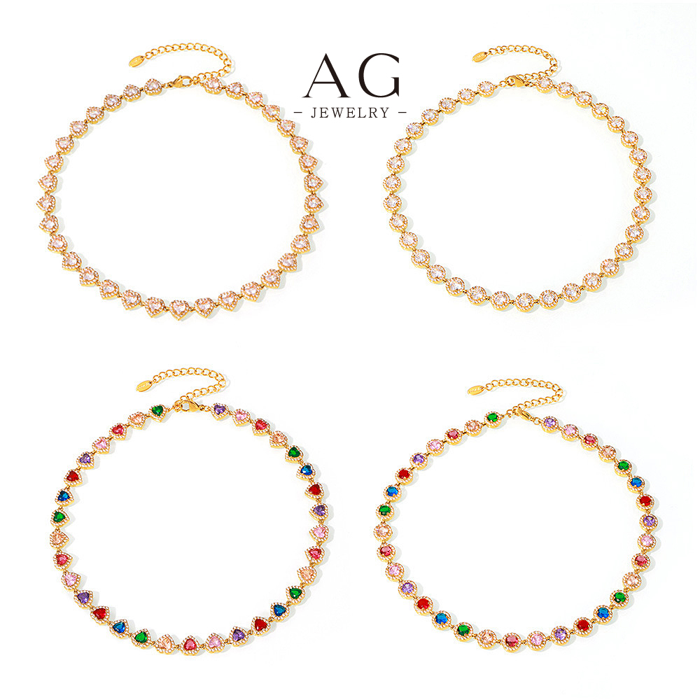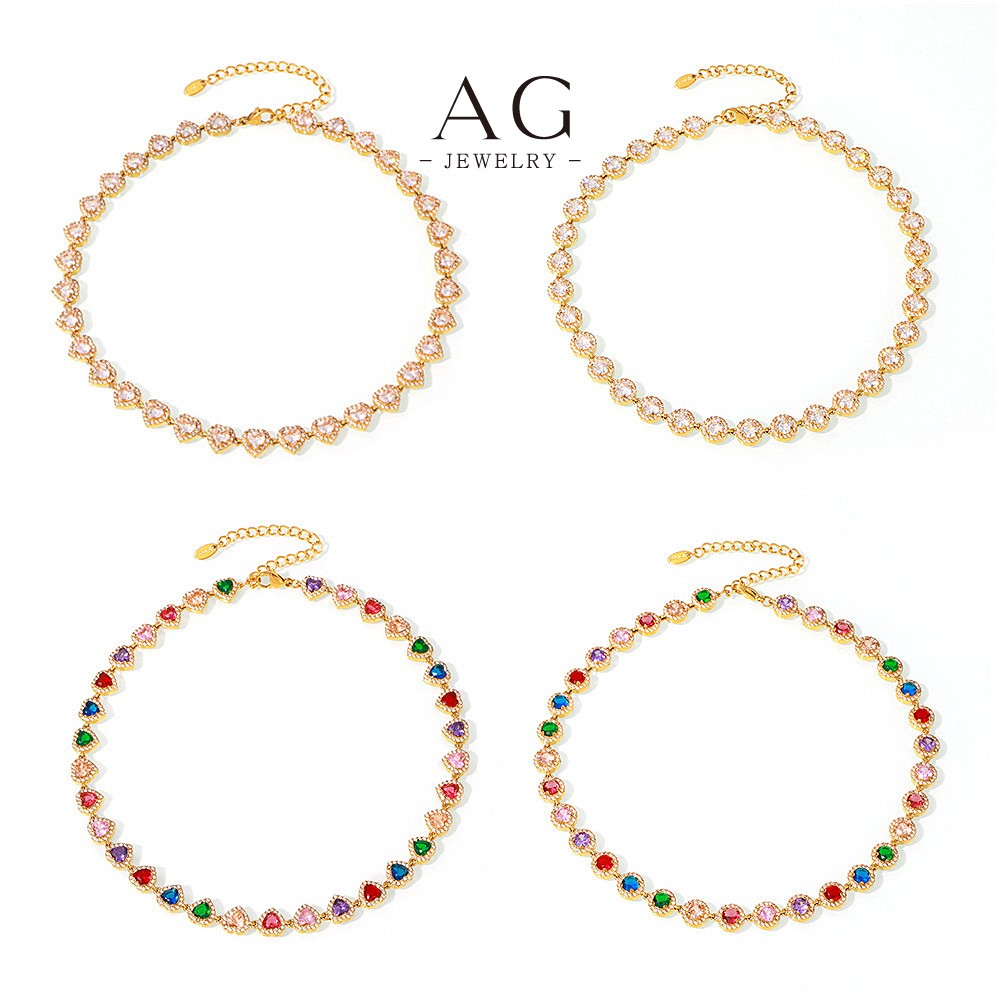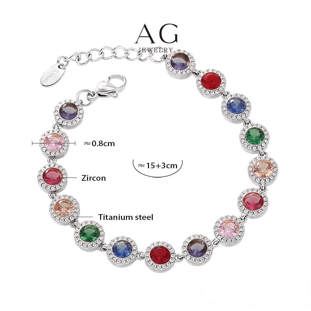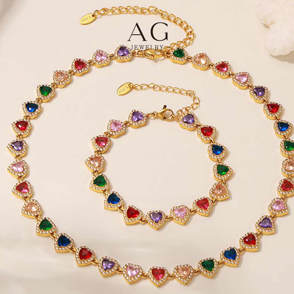 AG Stainless Steel Full Cut Multi Color Zirconia Heart Bracelet AGE556