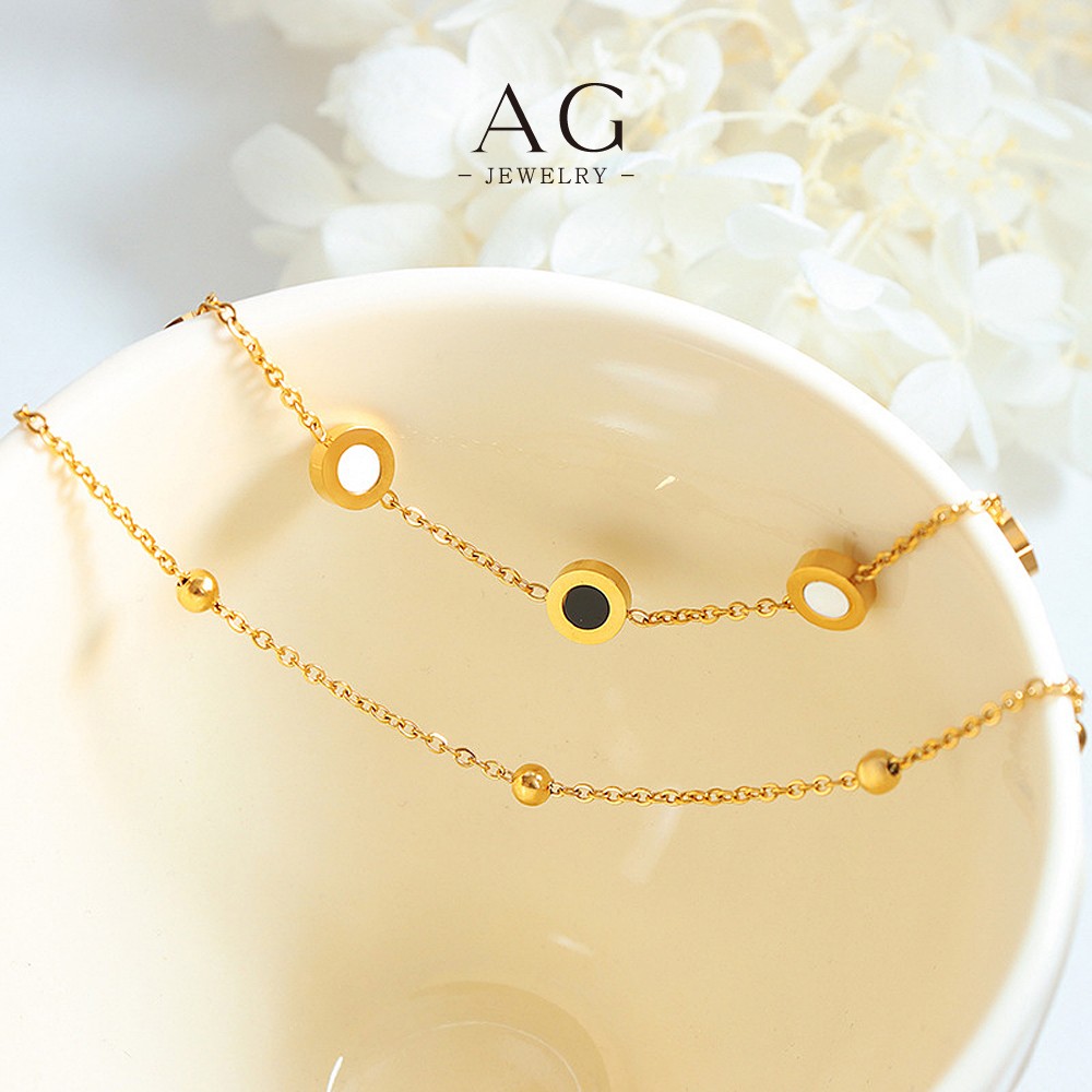 AG Stainless Steel Black White Mother Of Pearl Bead Bracelet BSCI Certified AGE144