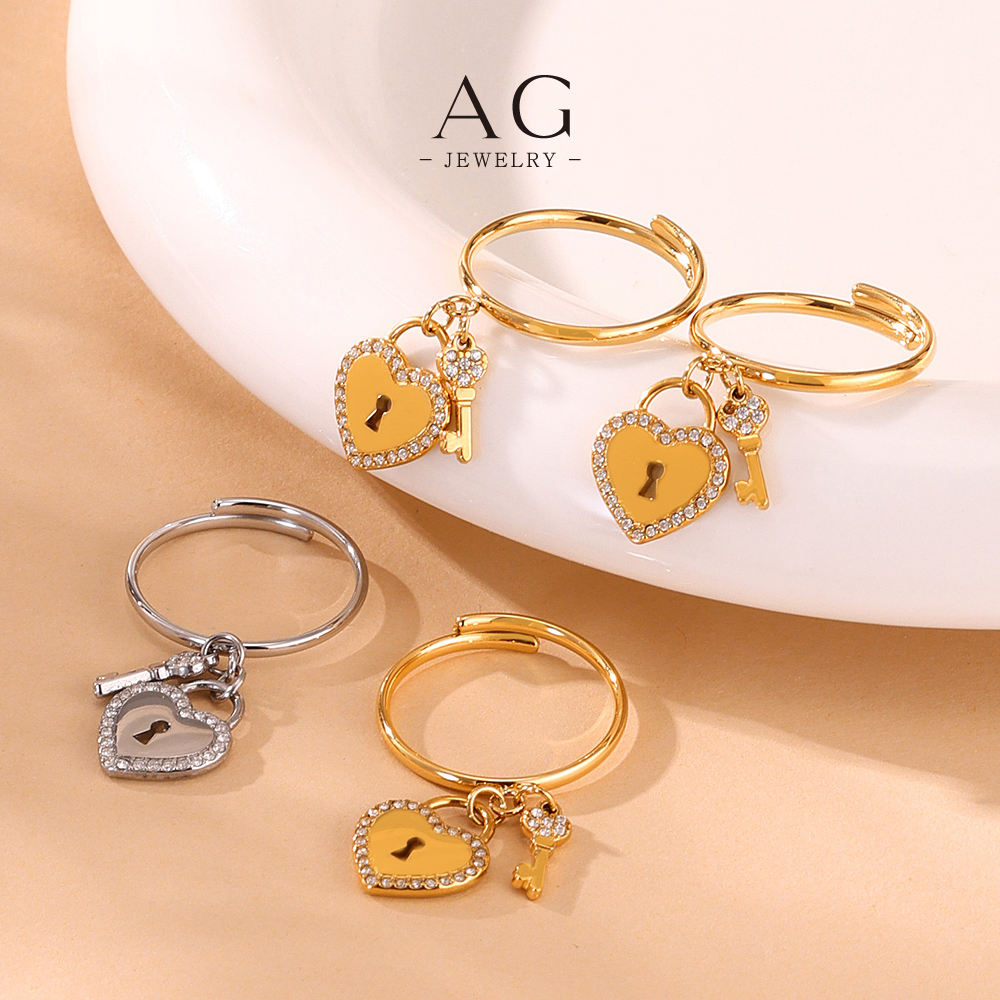 AG Heart And Lock Jewelry Set Necklace Bracelet Earrings Rings Romantic Security Collection AGTXA299