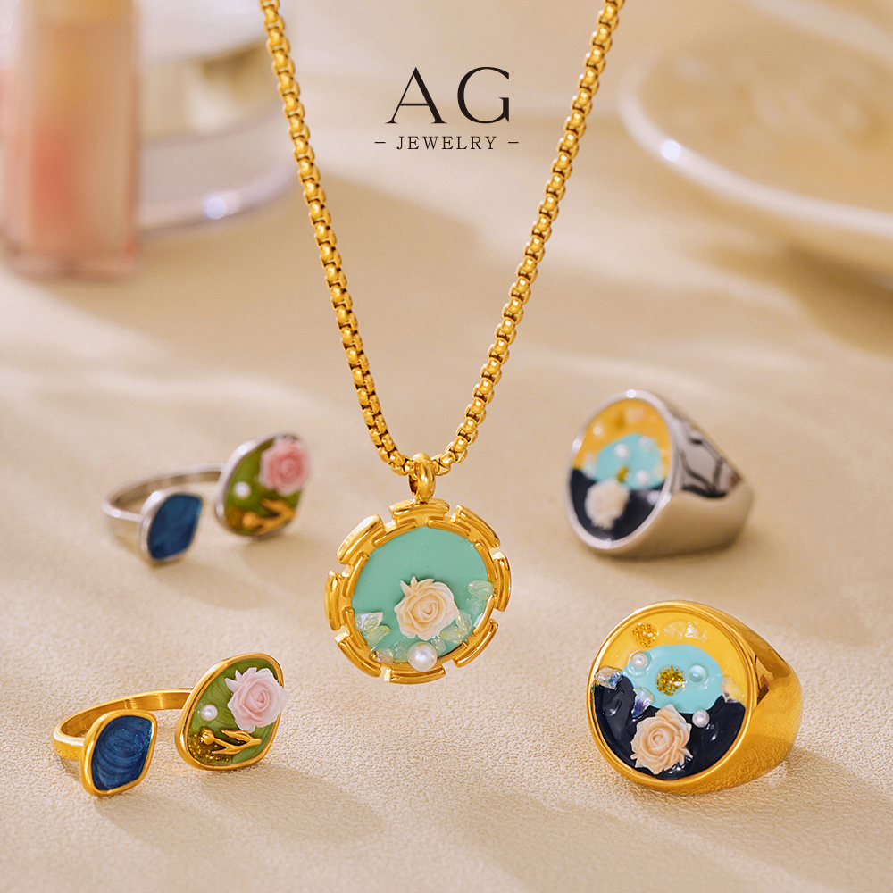 AG Vintage Floral Jewelry Set Necklace Earrings Bracelet Ring Antique Bloom Collection AGTXA246