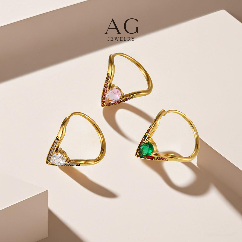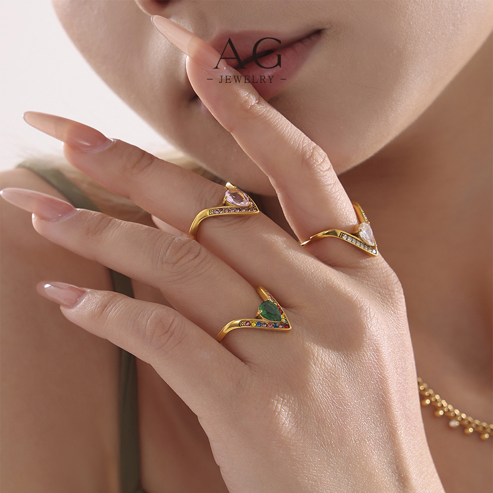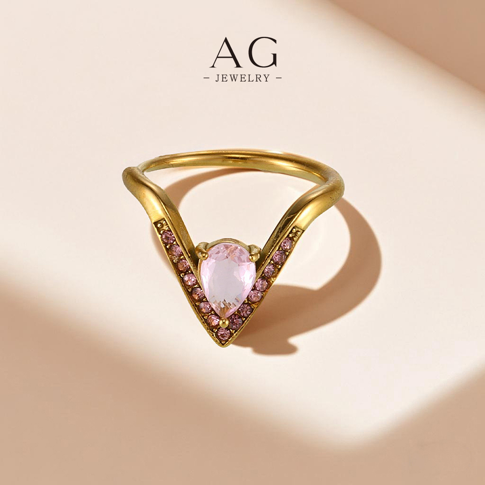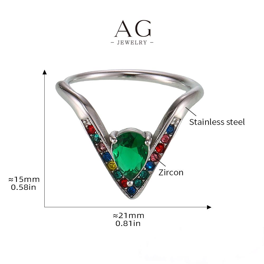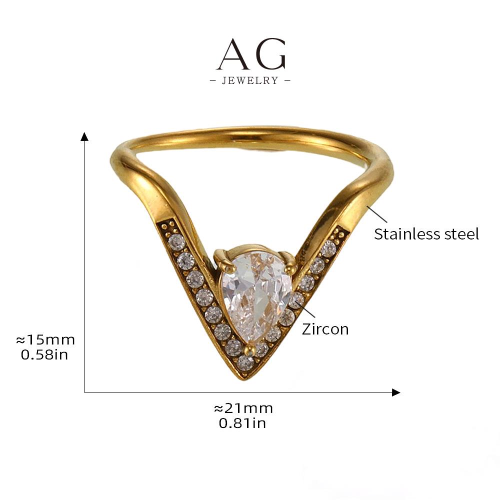 AG Stainless Steel Vintage V Shape Zirconia Ring Retro Design Jewelry Custom Manufacturer Small MOQ AGA976