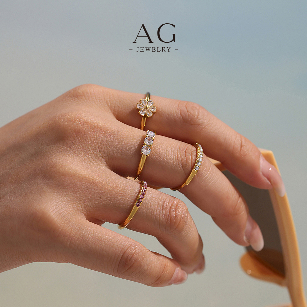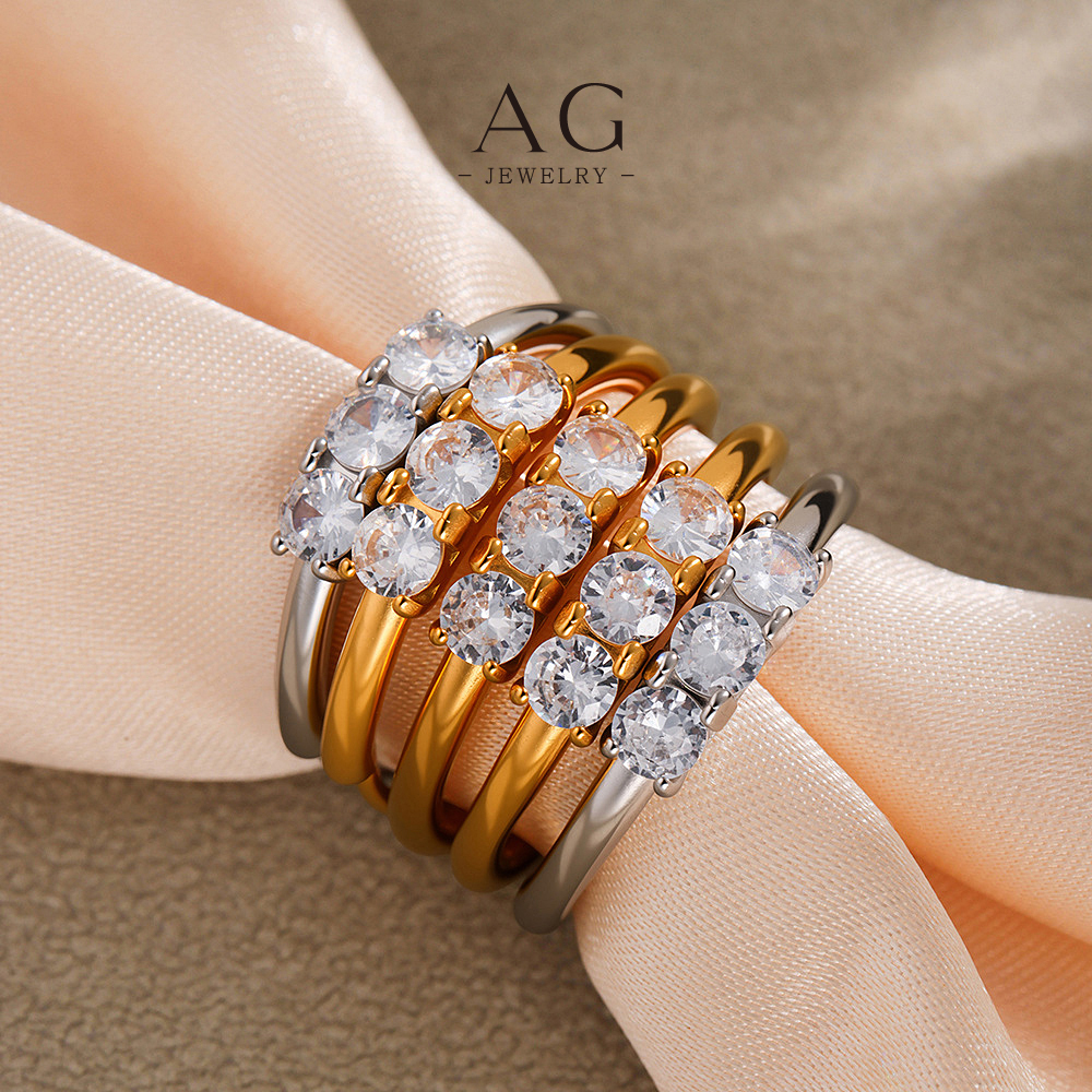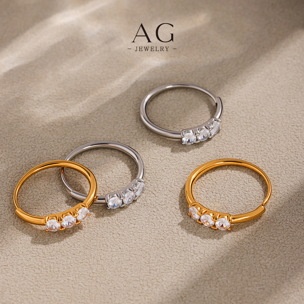 AG Stainless Steel Three Zirconia Ring BSCI Certified Manufacturer Small MOQ AGA750
