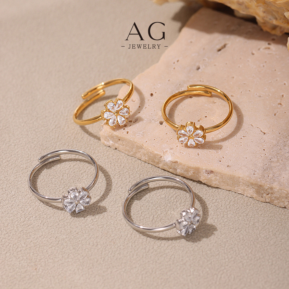 AG Stainless Steel Floral Ring Set Bulk Order Supplier Custom Design Accepted AGA749